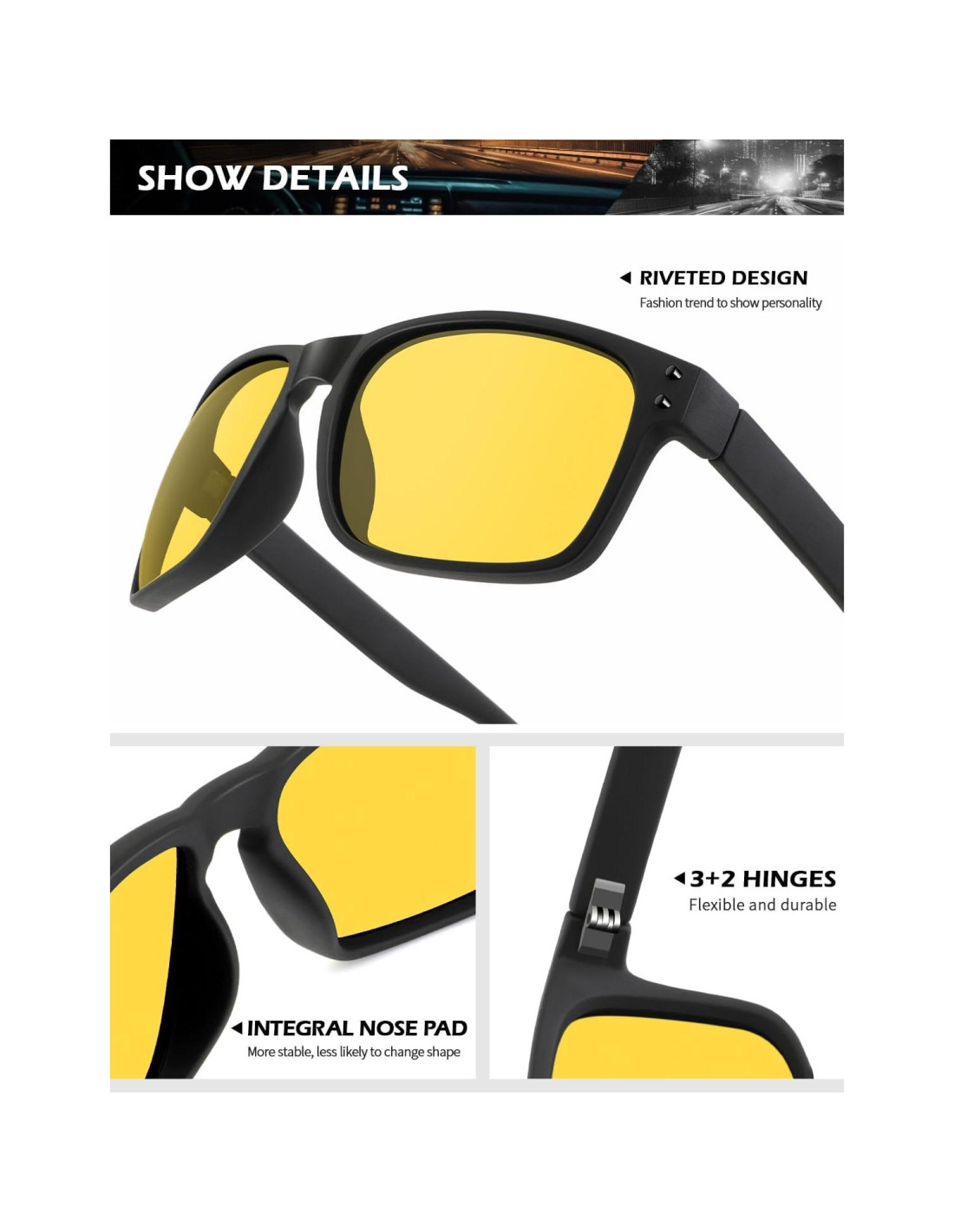 - Estilo clásico de gafas de sol - Estas gafas de visión nocturna KALIYADI para hombres adoptaron un estilo de moda clásico y atemporal. El diseño de marco cuadrado retro está acentuado por adornos de remaches, perfecto para aquellos que buscan partes iguales de rendimiento y estilo. Creamos estas gafas mejoradas para hombres con estilo deportivo y marco curvado, que hacen que el usuario se vea más genial sin importar qué ropa combine.
