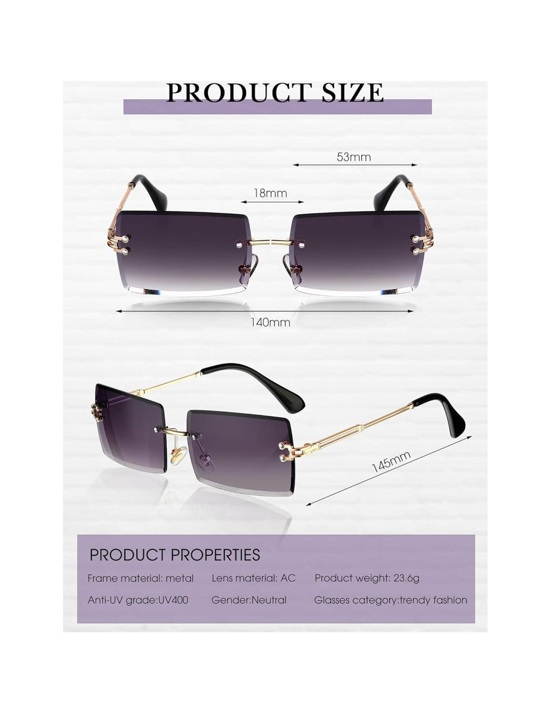 - Material Confiable: el soporte de las gafas de sol rectangulares sin montura está hecho de metal, que es ligero y resistente, no se decolora ni se rompe fácilmente, es amigable con la piel y cómodo de usar, se puede llevar durante mucho tiempo sin agregar mucho peso a tus oídos y nariz