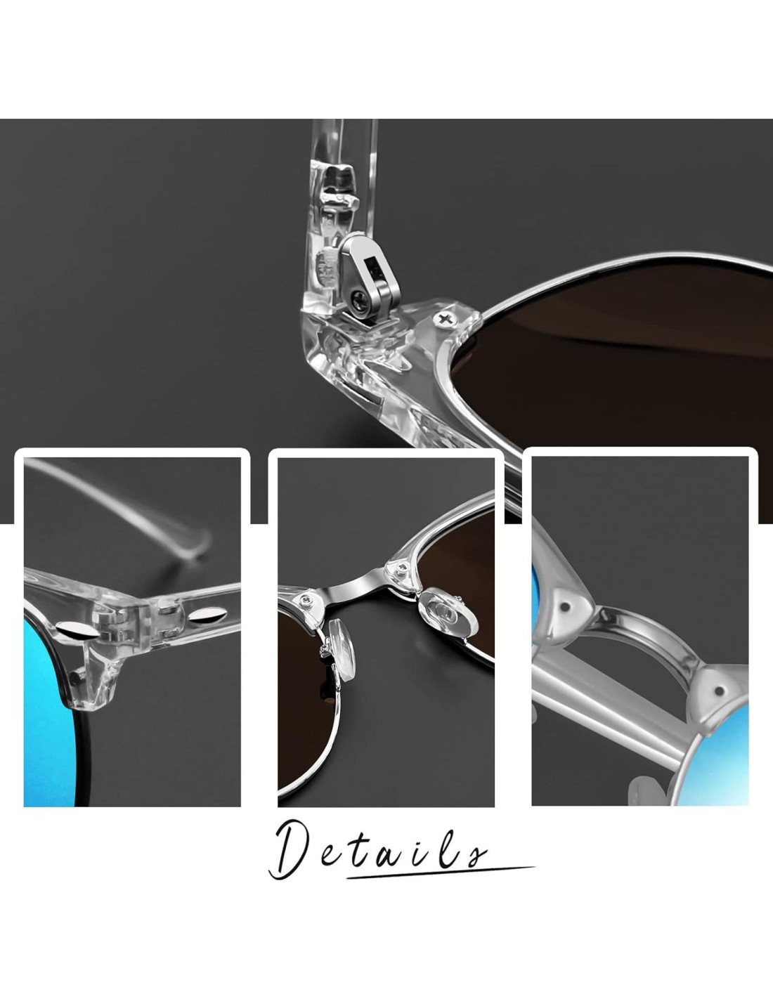 - Gafas de sol unisex Club Masters elegantes: No puedes perderte las gafas de sol semi rim azul de Joopin para mujeres y hombres. Este chic browline con gafas de sol retro de cuerno clásico te permite mantenerte en contacto con la moda. Las delicadas gafas de sol azules te hacen más encantador y fresco. El corte preciso exclusivo de Joopin de las gafas de sol transparentes se adapta a todas las formas de cara. Deja que las gafas de sol de marco transparente resalten tu atuendo personal, mostrando tu encanto único. ¡Listo para ser la superestrella con las gafas de sol de medio marco Joopin!