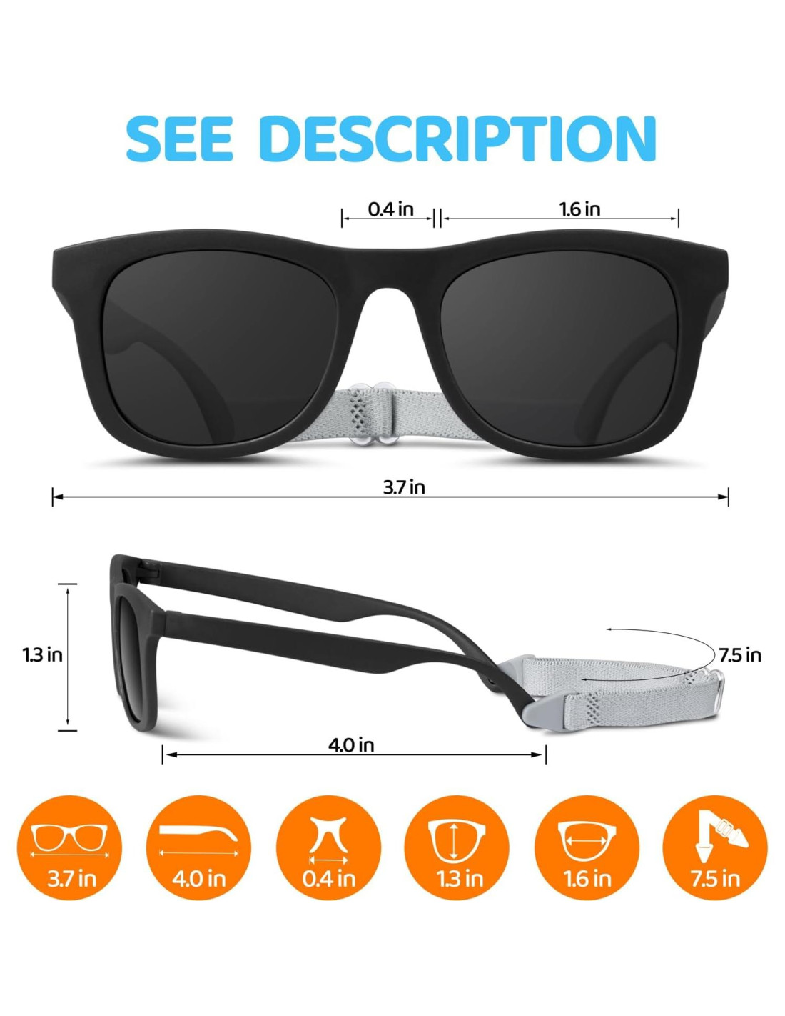 - [Seguridad] Las gafas de sol RIVBOS para bebés utilizan lentes TAC no tóxicos y materiales de marco TPE, asegurando que sean seguras e inofensivas