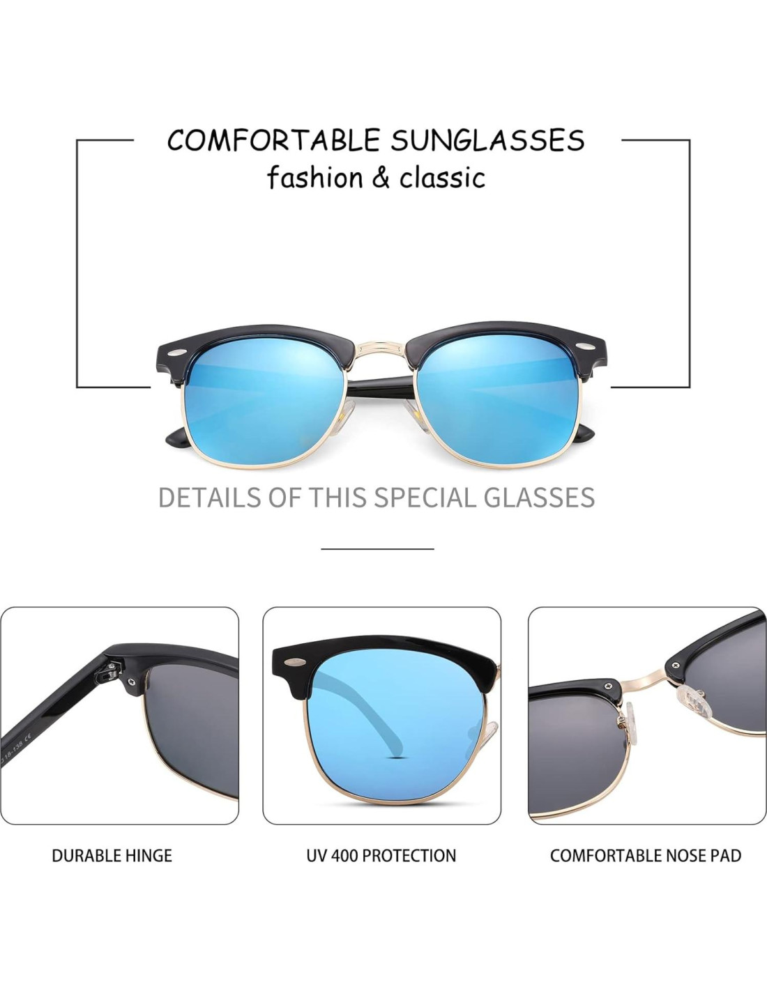 - Alta calidad: Sabemos la importancia de usar un par de gafas de sol cómodas para cada usuario, por lo que ponemos mucho énfasis en la calidad de las gafas de sol para mujeres y hombres. Para asegurar un uso duradero y comodidad, adoptamos material de alta gama para hacer un marco ligero y una almohadilla nasal cómoda, y no habrá presión en tu oído ni marcas en tu nariz.