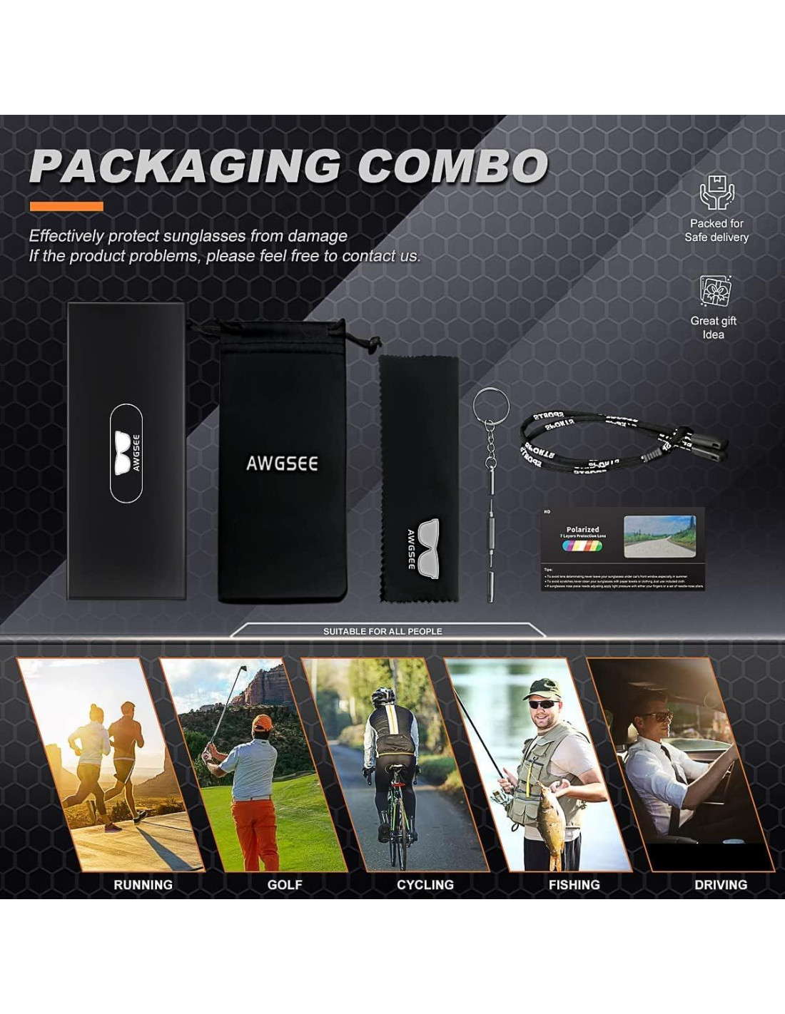 - OCASIONES DE USO - Las gafas de sol polarizadas AWGSEE ayudan a reducir el deslumbramiento y proporcionan claridad adicional mientras mantienen tus ojos protegidos. Son ideales para su uso en motocicleta y ciclismo, conducción, correr, pescar, escalar, golf, senderismo u otras actividades al aire libre.