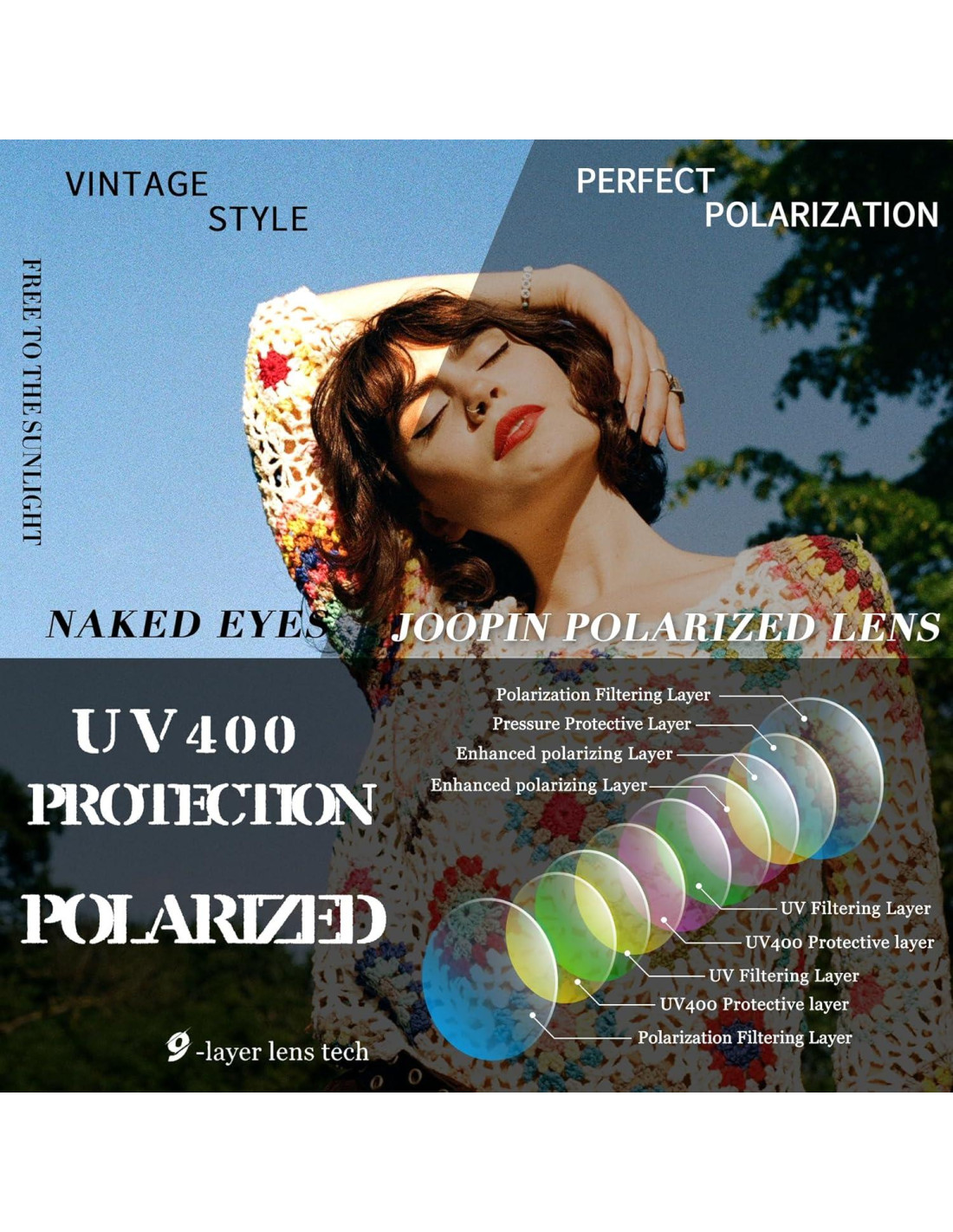 - LIGERAS Y CÓMODAS: Debido a los materiales de resina premium, las gafas de sol de marco de ojo de gato Joopin para mujeres son ligeras, lo que puede hacer que tu nariz y oídos se sientan cómodos. Las almohadillas nasales de una sola pieza de las gafas de sol triangulares puntiagudas Joopin evitan que el cabello se enrede al usar gafas de sol de marco de gato en tu cabeza. Las gafas de sol de forma de gato polarizadas son modernas y de moda, puedes usarlas cuando estés en una fiesta, en tu tiempo libre, pueden hacerte lucir muy moderna con un toque totalmente vintage.
