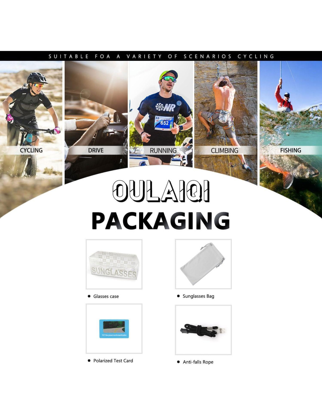 - Lentes polarizados: este par de gafas utiliza lentes polarizados OULAIQI, que reducen el deslumbramiento, mejoran la claridad visual y el contraste, y mejoran la percepción del color. Son especialmente adecuadas para actividades al aire libre como ciclismo, béisbol, correr, conducir, pescar, esquiar, deportes acuáticos, etc.