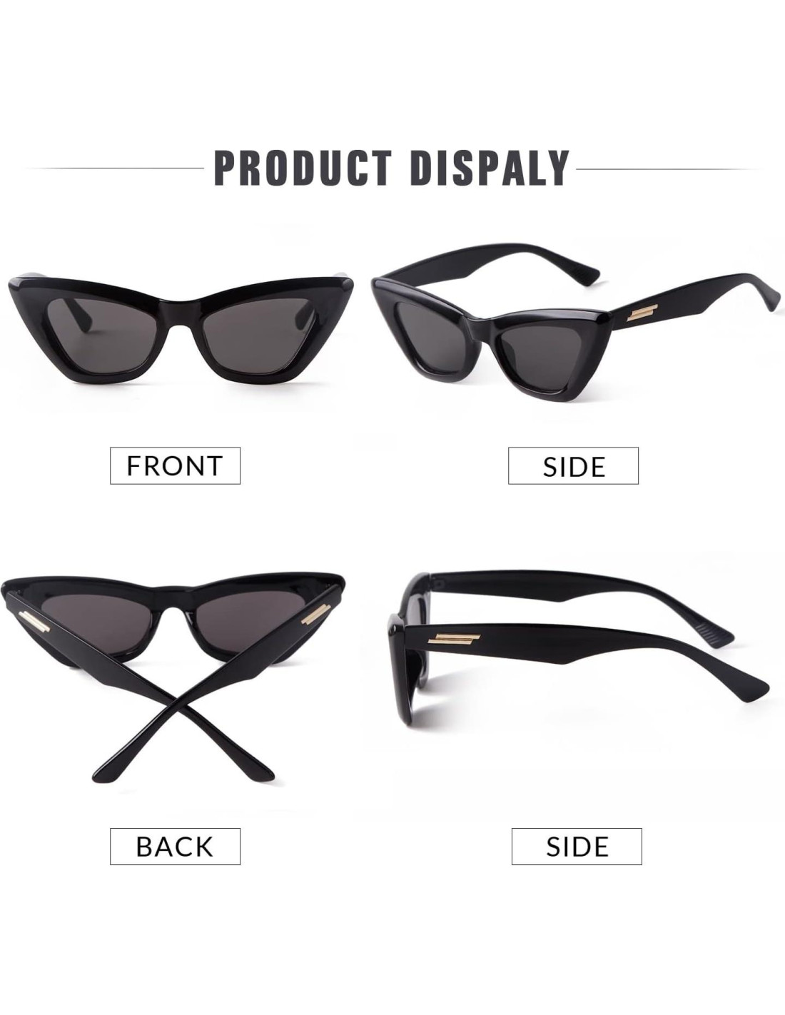- GAFAS DE SOL OJO DE GATO PARA MUJERES: Las gafas de ojo de gato son un estilo clásico que ha existido desde la década de 1950. Son perfectas para añadir un toque femenino a tu atuendo. Puedes elegir entre una variedad de colores: Negro, estampado de leopardo, Rosa, Naranja, Rayas en blanco y negro, Azul, Amarillo, Marco de caparazón de tortuga