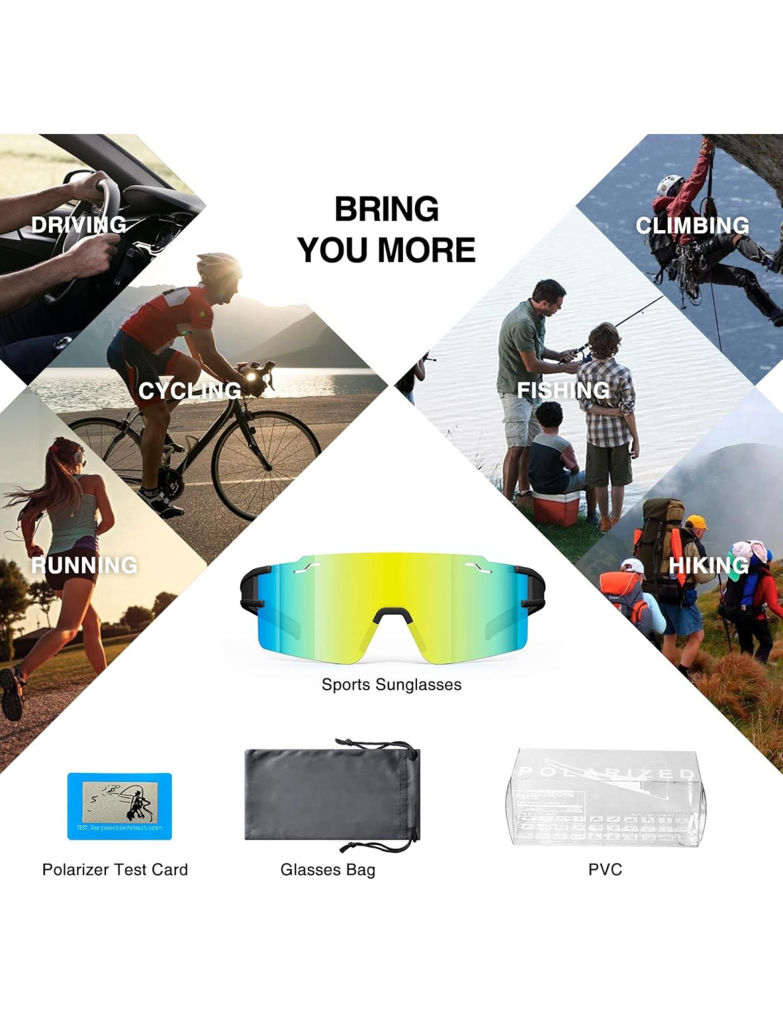 - [DISEÑO DE MONTURA ULTRA-LIGERA] Nuestras gafas de sol deportivas están hechas de monturas TR90 super ligeras, ligeras y resistentes, incluso para un uso prolongado sin sentir incomodidad, perfectas para deportes al aire libre.