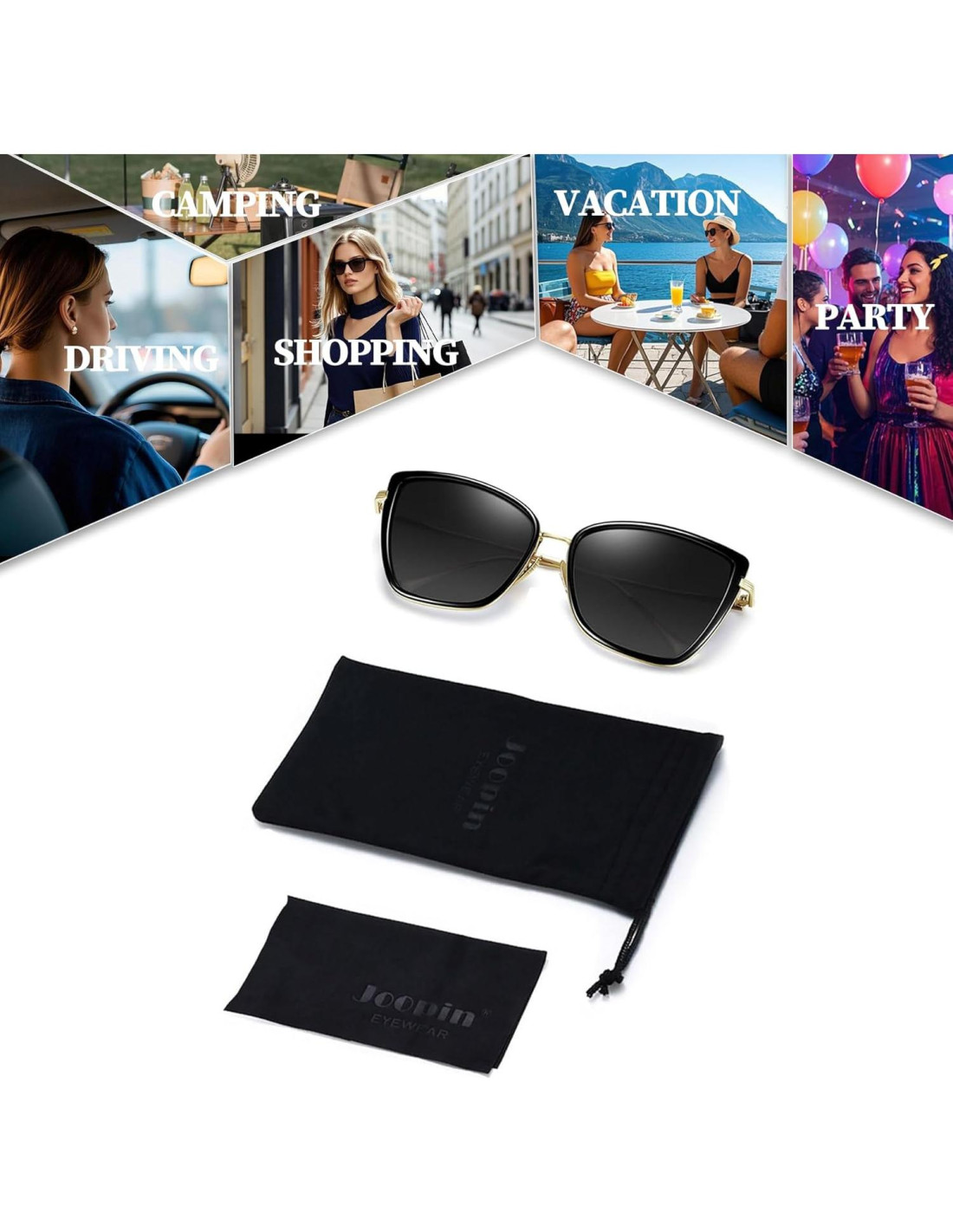 - Adecuadas para diferentes ocasiones: Las gafas de sol de gran tamaño estilo gato de Joopin pueden darte más opciones para tus atuendos. El diseñador de las gafas de sol estilo gato de Joopin regresa a la simplicidad y el minimalismo, haciendo que las gafas de sol estilo gato sean retro pero a la moda. Las gafas de sol negras para mujeres te hacen lucir salvaje y sexy. Las gafas de sol estilo gato negras son gafas de sol de moda en tendencia, solo toma las gafas de sol cuando salgas a comprar, jugar, conducir, pescar, andar en bicicleta, etc.