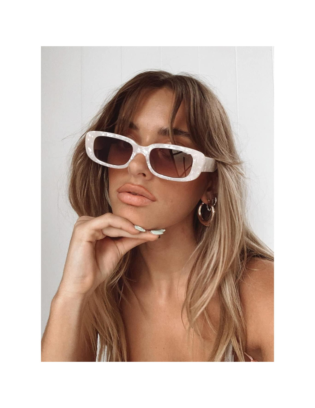 - Gafas de sol rectangulares para mujeres y hombres: este marco de forma rectangular estrecha es tanto un clásico atemporal como a la moda. Se adapta a todas las formas de cara como ovaladas, redondas, etc. Es un gran par de gafas de sol para el día a día.