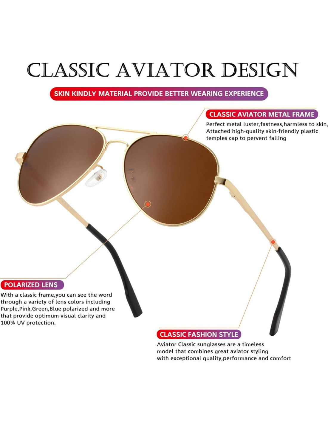 - LENTES POLARIZADOS - Estas clásicas gafas de sol aviador son polarizadas y proporcionan 100% de eficiencia de polarización mientras bloquean tanto la radiación UVA como UVB, filtrando y bloqueando eficazmente los deslumbramientos; Proporcionan un mayor confort visual, desvían las miradas envidiosas y te dan ese aspecto único, lo que las convierte en una opción ideal para días soleados.