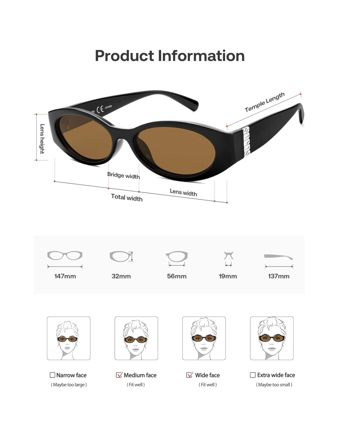 - MARCOS OVALADOS RETRO Y MODERNOS: Estas gafas de sol ovaladas retro chic están a la vanguardia de la última tendencia de moda. El diseño de marco redondo pequeño complementa varias formas de cara.