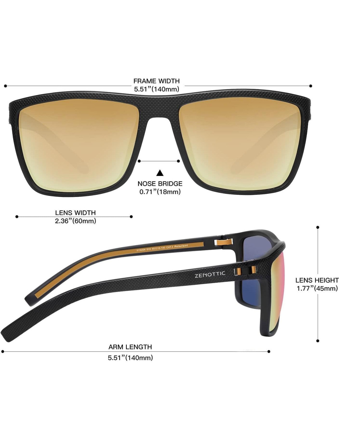 - [UV / Lente TAC Polarizada] El recubrimiento de protección UV400 bloquea el 100% de los dañinos rayos UVA, UVB y UVC hasta 400nm, restaura el color verdadero, elimina la luz reflejada o dispersa, mejora el contraste, anti-reflejo para hacer que tus ojos estén más cómodos. Las lentes TAC son extremadamente resistentes a impactos, resistentes a rayones, ligeras y duraderas.