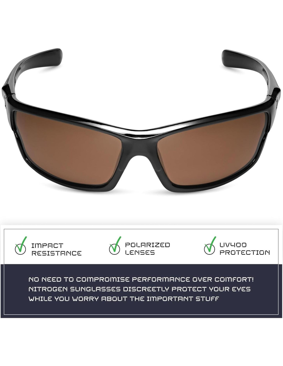 - DURADERO EN AVENTURAS DIARIAS: Fabricadas con policarbonato resistente a impactos, los marcos de las gafas de sol Nitrogen no solo lucen elegantes, sino que también garantizan un rendimiento duradero que puede seguir el ritmo de tu estilo de vida activo.