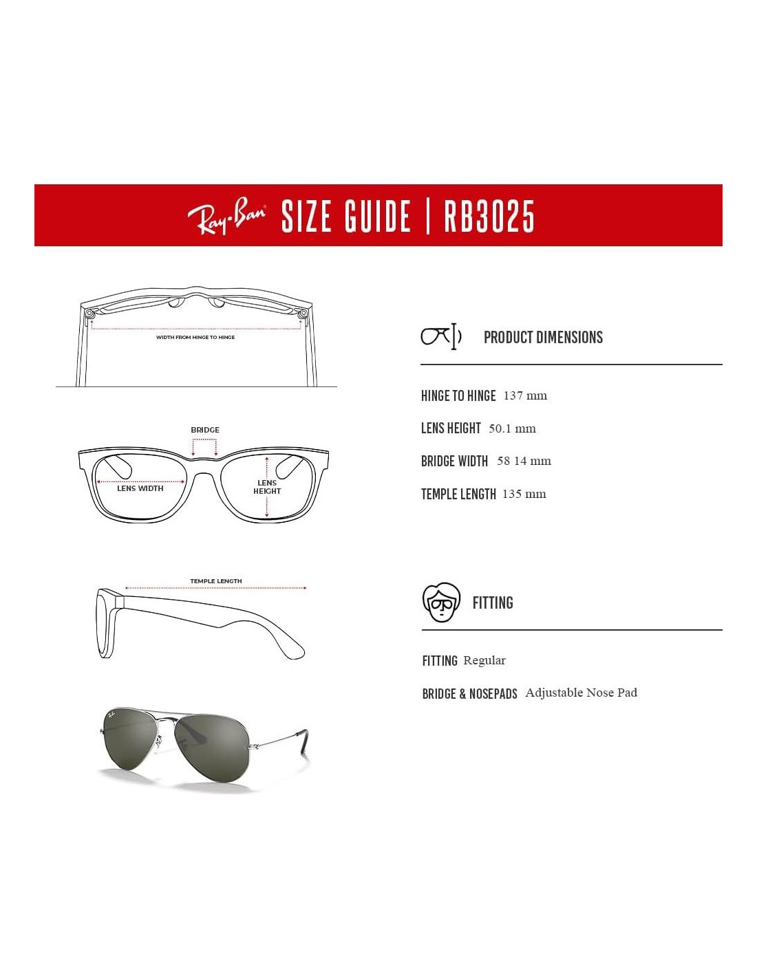 - Número de modelo del artículo: RB3025 AVIATOR LARGE METAL