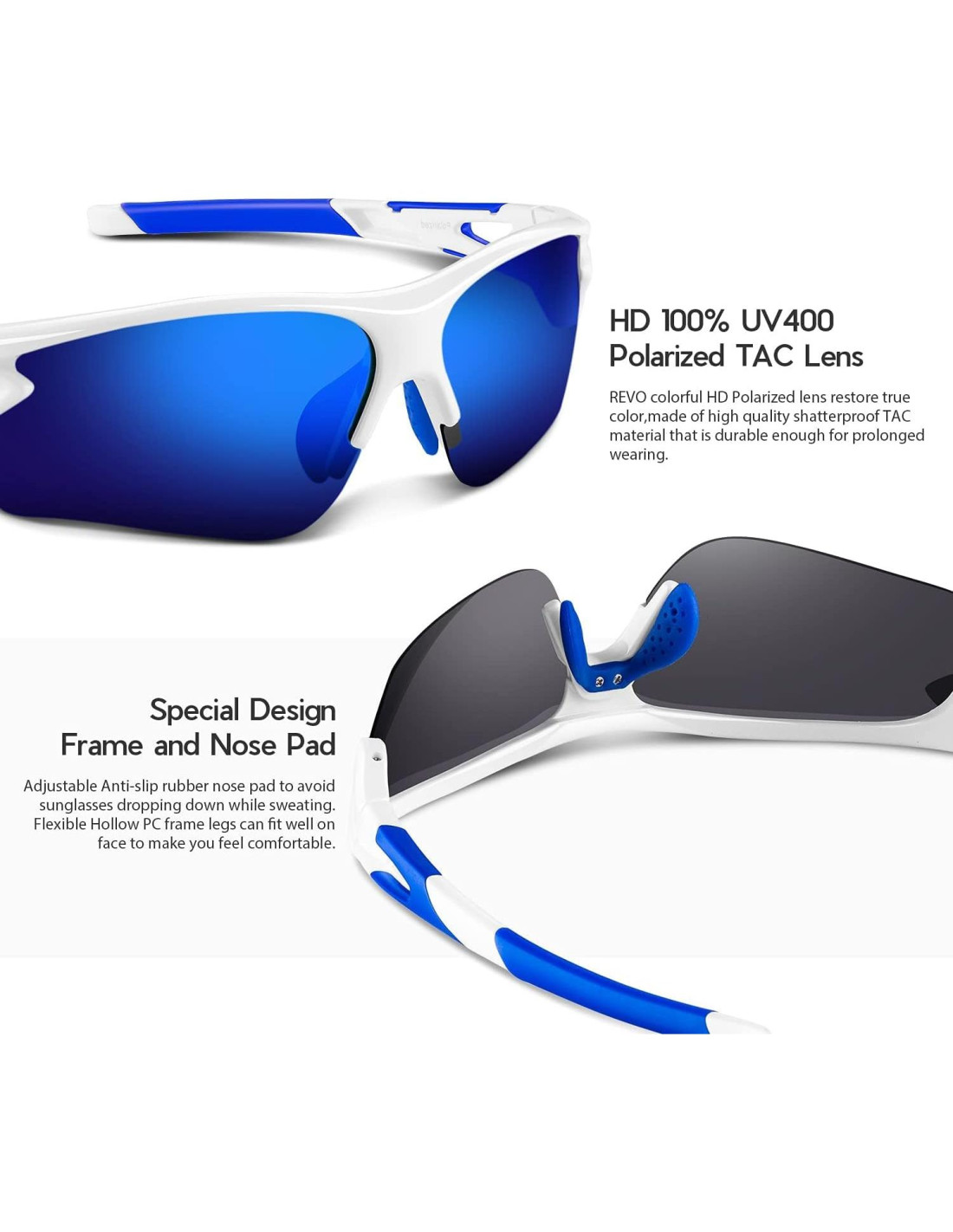 - LENTE POLARIZADA HD COLORIDA 100% UV400: La lente UV400 bloquea el 100% de los dañinos rayos UVA y UVB. La lente polarizada HD colorida REVO restaura el color verdadero, con un recubrimiento REVO de alta densidad, manteniendo el color original, mejorando la claridad visual y el contraste de manera efectiva. Facilita la eliminación de la luz reflejada y dispersa, haciendo que el paisaje sea más claro y suave y protegiendo los ojos perfectamente