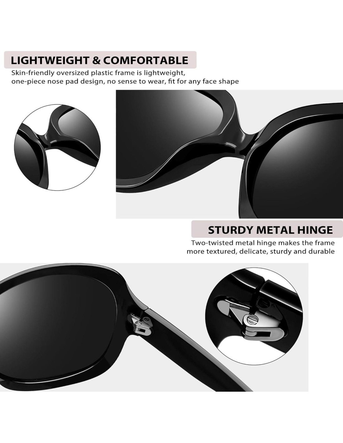 - EXCELENTE PROTECCIÓN UV400: El lente de visión de las gafas de sol tiene una clasificación de 400UV, puede bloquear el 99%-100% de la radiación UVA y UVB. Las gafas de sol polarizadas con lentes resistentes a los arañazos son esenciales para proteger tus ojos contra daños UV a largo plazo y mantener tus ojos saludables. Ya sea nublado o soleado, las gafas de sol UV son formas efectivas de prevenir el envejecimiento de la piel alrededor de tus ojos. Las enormes gafas de sol Joopin son cómodas de usar mientras garantizan una protección UV del 100%.