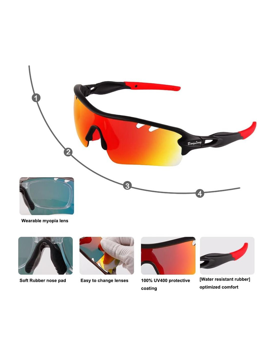 - 5 LENTES INTERCAMBIABLES - Gafas de sol polarizadas BangLong con 5 lentes intercambiables. Todos los lentes de las gafas de sol tienen un recubrimiento de protección UV400 al 100%, bloquean el 100% de los dañinos rayos UVA y UVB, reducen la fatiga ocular y hacen que la visión sea más clara.