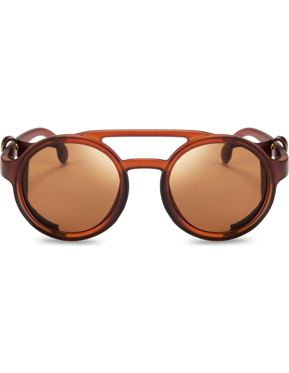 - Diseño STEAMPUNK - Gafas de sol redondas de estilo retro steampunk diseñadas con escudo lateral de cuero para mujeres y hombres. Gafas de sol vintage que te hacen lucir increíble y la persona más fashionable del mundo.