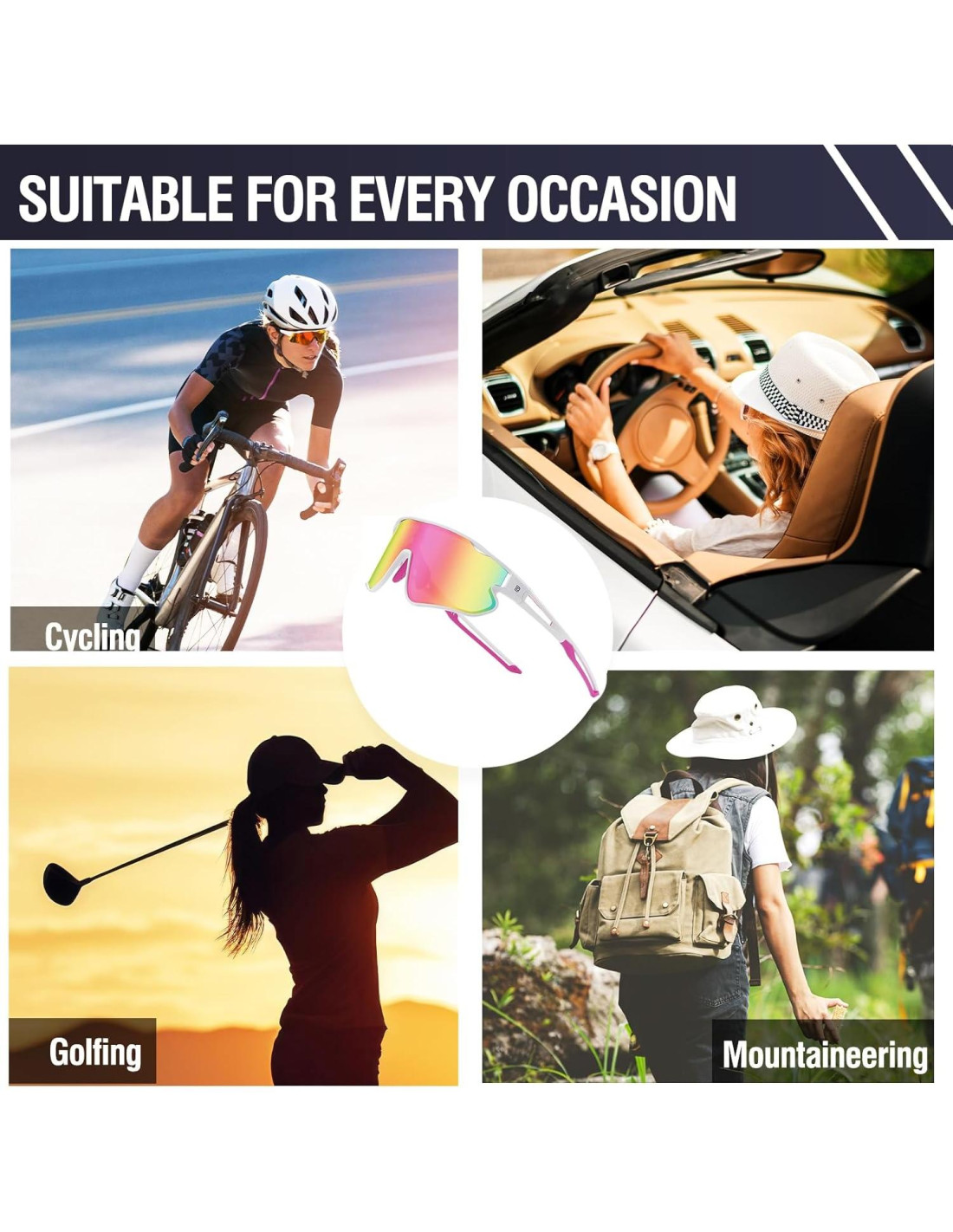- SU MEJOR ELECCIÓN PARA DEPORTES - Lentes más anchos proporcionan un campo de visión más amplio, ofrecen la máxima protección a los ojos contra los rayos UV, el polvo y el viento. El diseño curvado de los lentes tiene baja resistencia al aire, lo que los hace adecuados para actividades al aire libre como montar en bicicleta, correr, béisbol, escalar, carreras, jugar golf, pescar, ciclismo, navegar, esquiar en agua, conducir, hacer senderismo y viajar.