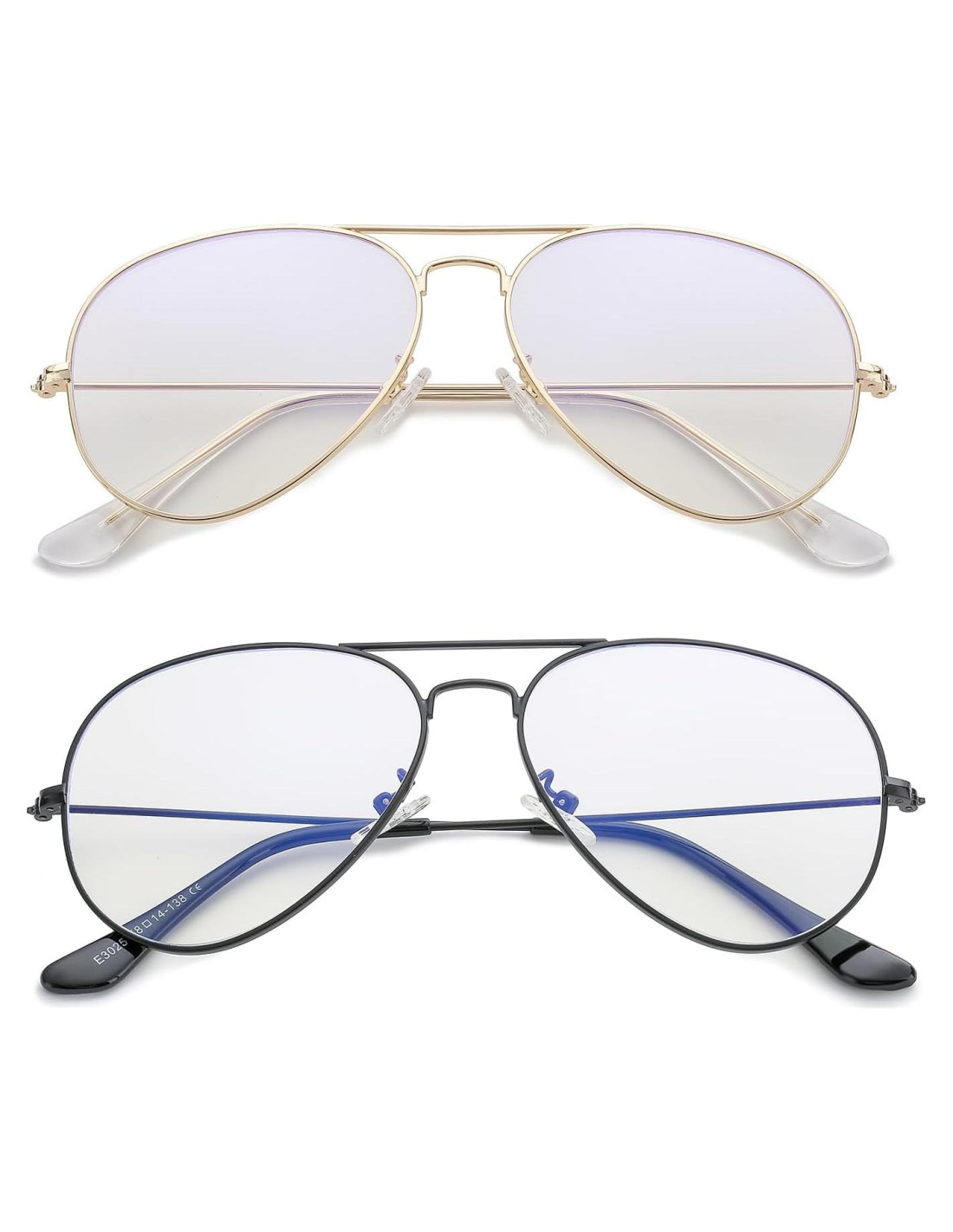 - CÓMODAS DE USAR - Estas gafas piloto que bloquean la luz azul cuentan con un marco de metal ligero para durabilidad, almohadillas nasales de silicona suaves para ser amigables con la piel, bisagras de metal reforzadas y patillas delicadas, todo diseñado con detalles para asegurar que puedas usarlas cómodamente durante mucho tiempo.