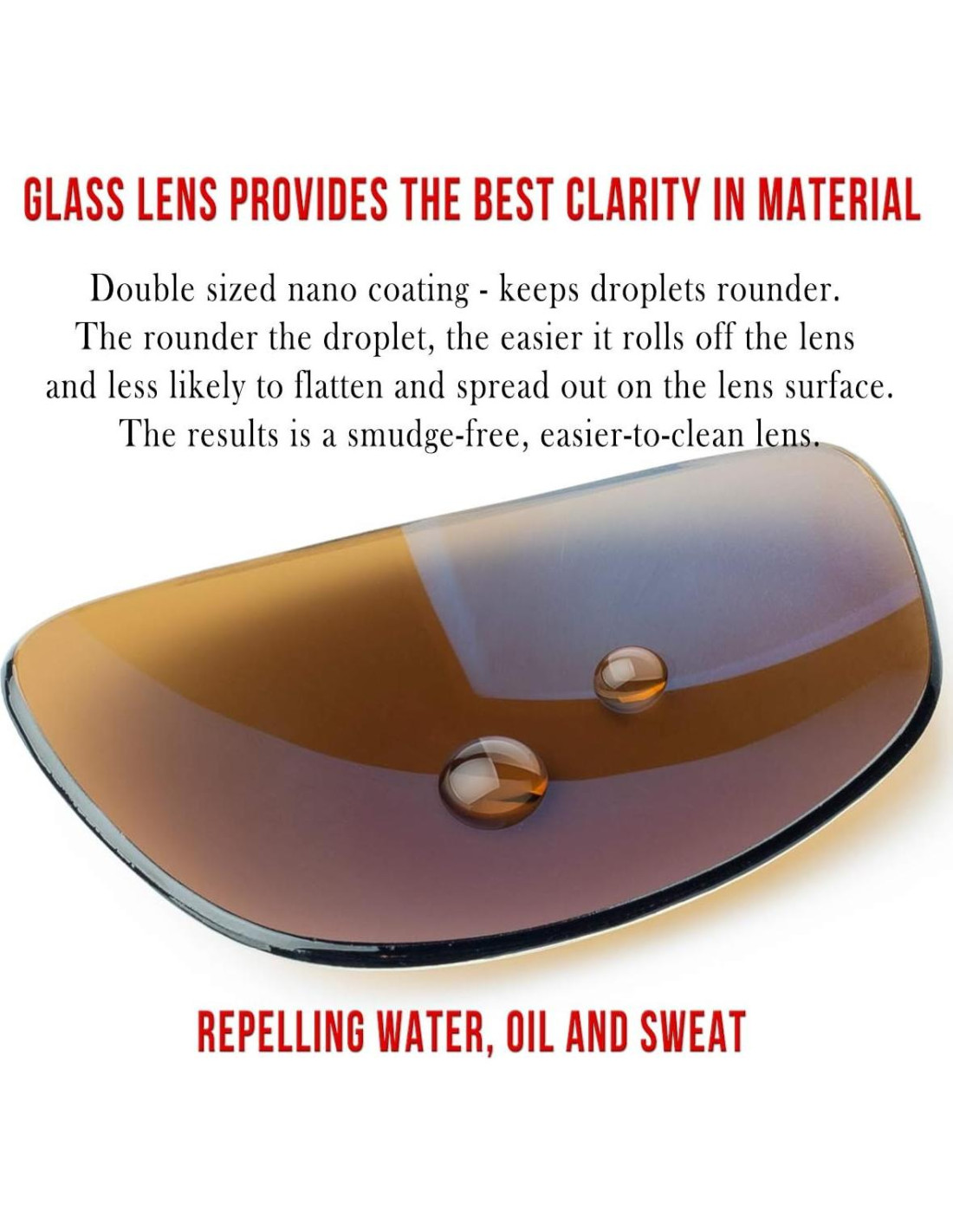 - LENTES DE VIDRIO: Estas gafas de sol polarizadas utilizan lentes de vidrio Corning, que proporcionan mejor claridad que los lentes de plástico y son resistentes a los arañazos. El recubrimiento nano de reflexión multicapa no solo reduce el deslumbramiento, sino que también las hace fáciles de limpiar. Disfrutarás de una visión cristalina con estos lentes de alta calidad.