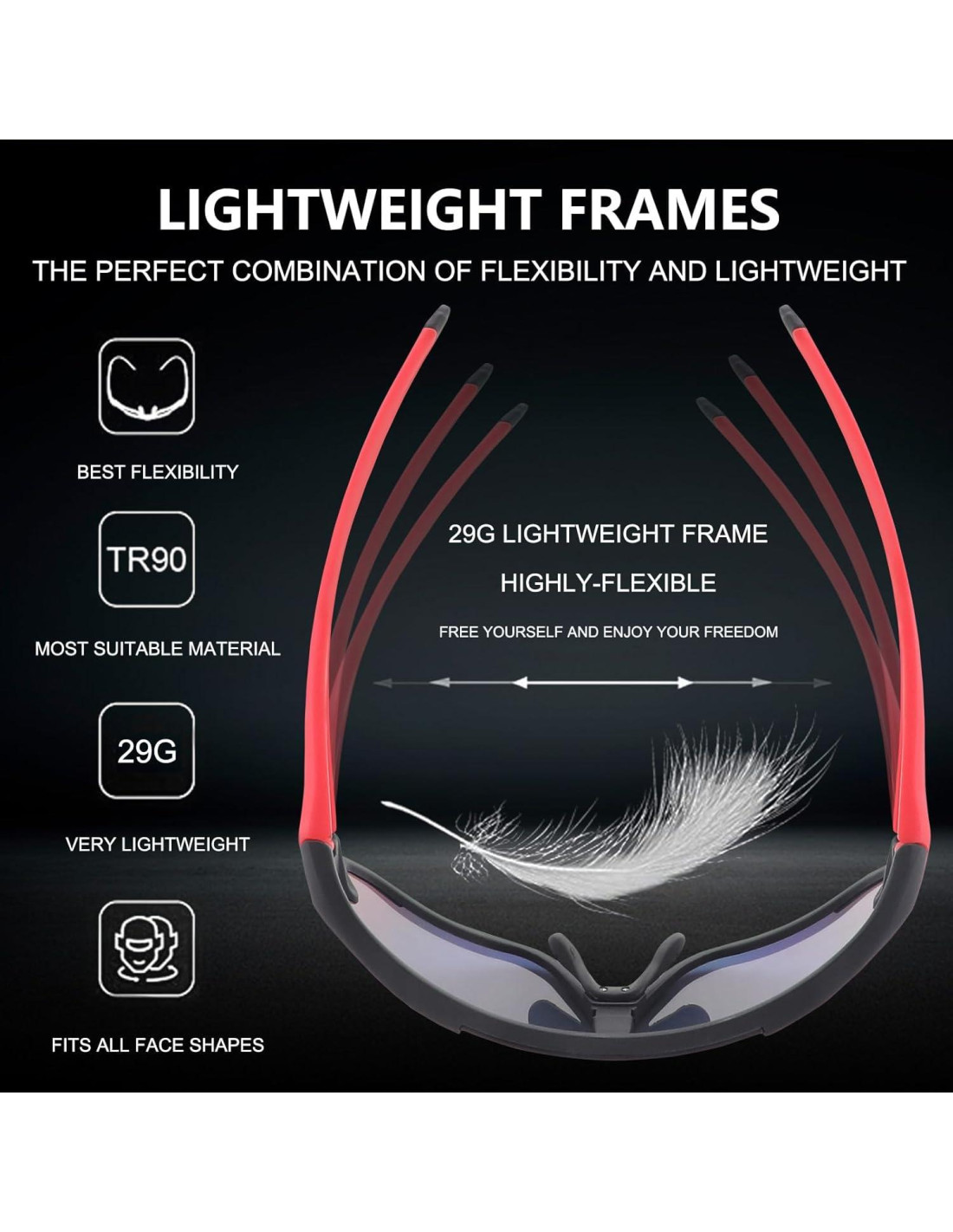 - DISEÑO LIGERO DE TR - Nuestras gafas de sol deportivas están hechas de un marco de TR y un lente polarizado TAC de diseño ligero que no sentirás que las llevas puestas. El marco puede doblarse bajo presión y contornear tu cara cómodamente.
