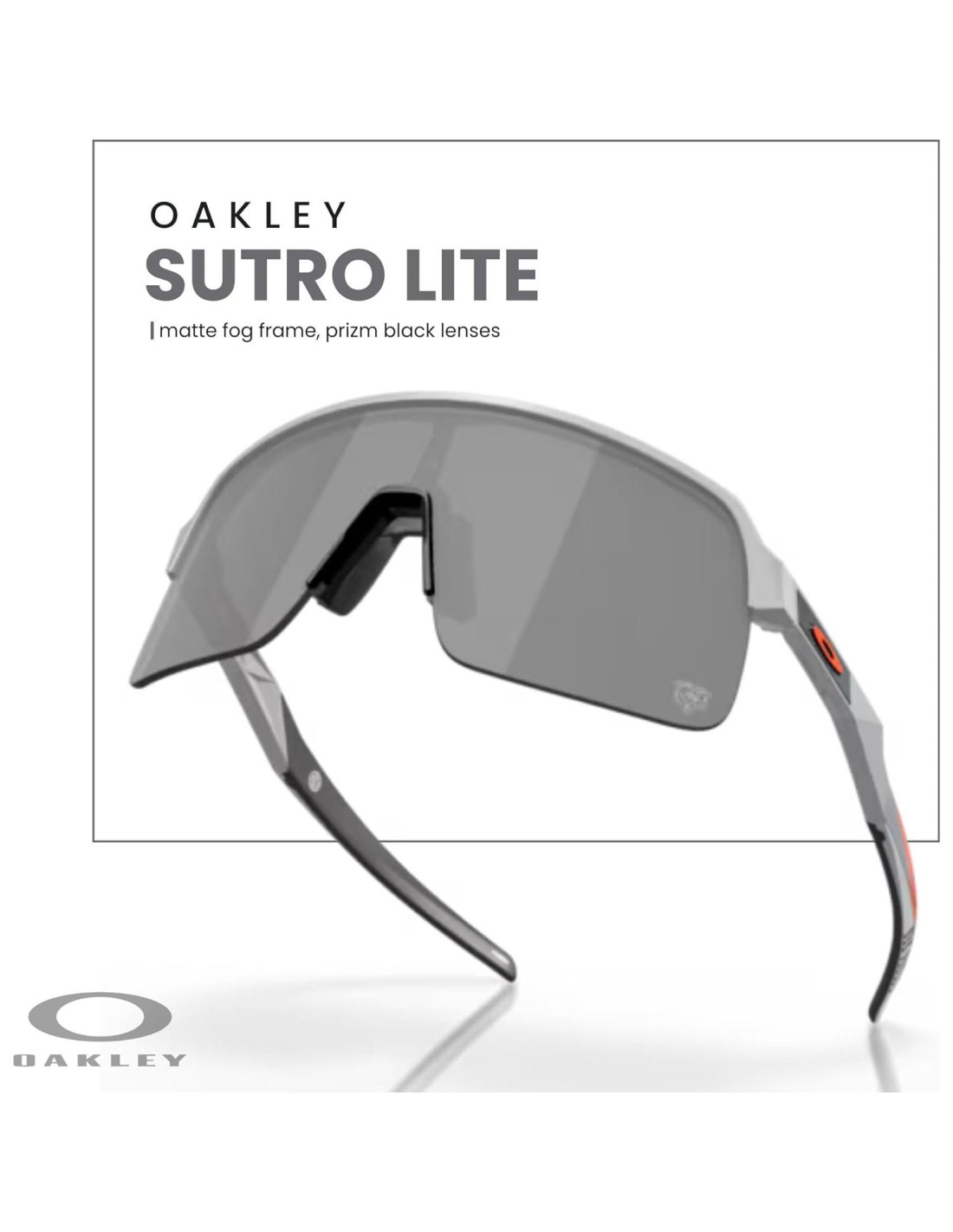 - Acerca de la montura: Las Oakley Sutro Lite cuentan con una montura Matte Fog O Matter, diseñada para hombres. Este material ligero y duradero asegura comodidad durante todo el día. El diseño semi-rimless y de alta envoltura, inspirado originalmente en ciclistas urbanos, mejora la visión periférica y ofrece un aspecto audaz y orientado al rendimiento, ideal para deportes y actividades al aire libre.