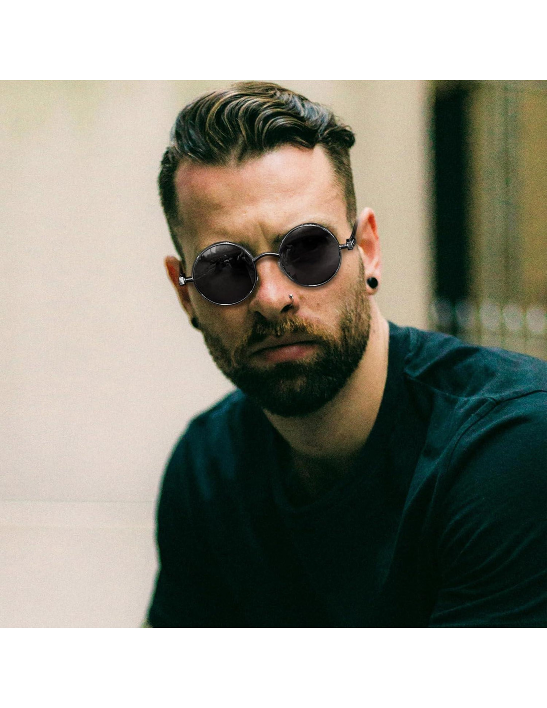 - Protección UV400: Las lentes de las gafas de sol metálicas tienen una clasificación UV400, pueden bloquear el 99%-100% de la radiación UVA y UVB. Las gafas de sol UV400 son esenciales para proteger tus ojos contra daños UV a largo plazo y mantener tus ojos saludables. Además, las gafas de sol con protección lateral negra te brindan una experiencia única. Ya sea que esté nublado o soleado, las gafas de sol redondas polarizadas con protección UV son un escudo esencial para proteger tus ojos.