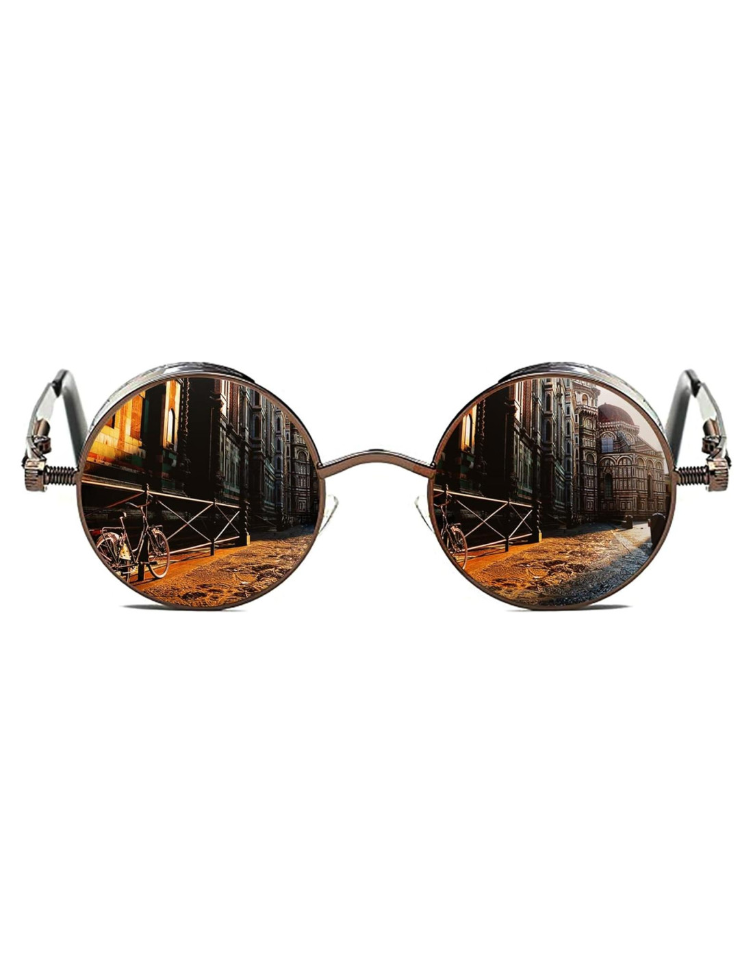 - [Diseño Gótico Steampunk]: Estas gafas de sol polarizadas con marco de metal cuentan con patas de resorte y un marco redondo intrincadamente tallado, combinando elementos históricos y tecnológicos.