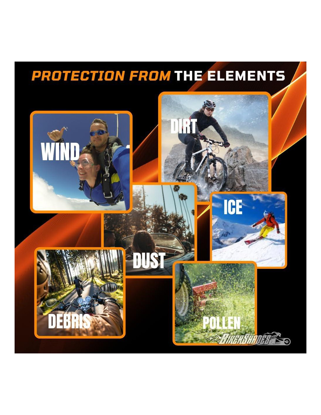 - PROTECCIÓN CON ALMOHADILLAS DE ESPUMA: La almohadilla de espuma a prueba de sudor protege tus ojos del viento, el polvo y los escombros mientras conduces tu motocicleta. También son excelentes para esquiar, trabajar en el taller o cortar el césped. La almohadilla de espuma mantiene tus gafas de conducción seguras alrededor de tu cara para que no se caigan ni se muevan a altas velocidades. Sella el frío de los vientos subcero en invierno.