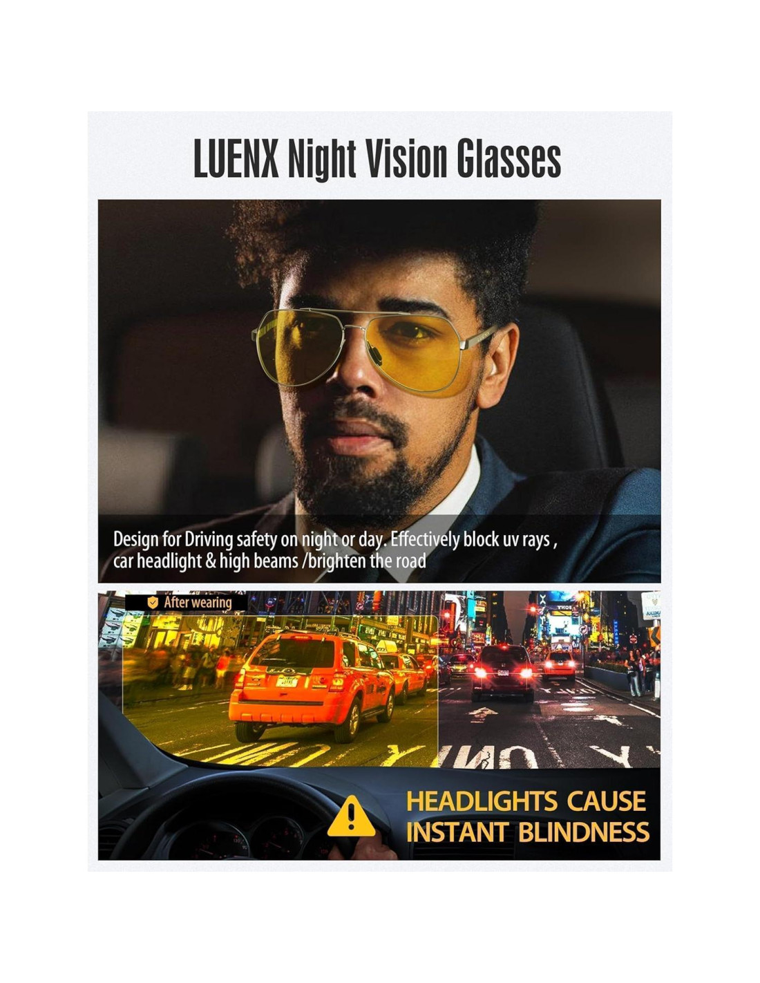 - Gafas de visión nocturna para conducir: Las gafas de visión nocturna LUENX están diseñadas para proteger los ojos de la luz azul emitida por el tráfico que se aproxima. Filtran el deslumbramiento y suavizan las luces de alta intensidad y duras de los faros, luces de calle, señalización iluminada por LED y vallas publicitarias, mientras mejoran la claridad y definición por la noche. Adecuadas para conducir de noche o en condiciones de luz diurna brumosa. Como en niebla, nublado y lluvioso