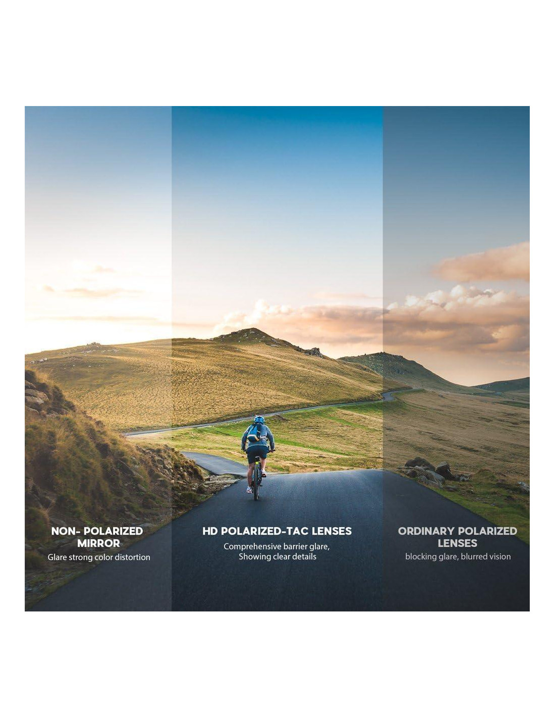 - Material TAC de Calidad Premium: Todas las lentes están hechas de material TAC irrompible de alta calidad que es lo suficientemente duradero para un uso prolongado. El diseño del marco de PC ligero es ideal para cualquier actividad al aire libre, resistente a los arañazos e irrompible. Los ricos colores de las lentes combinan moda con deportes y son adecuados para hombres y mujeres