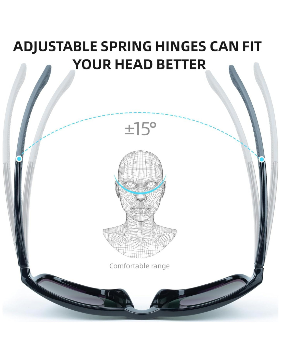 - HINGAS DE RESORTE: Las bisagras de resorte, además de los componentes estándar de una bisagra, nuestras gafas de sol tienen un resorte conectado directamente a la bisagra, lo que permite una mayor extensión de la patilla hacia afuera, formando un sistema de bisagra de patilla flexible que proporciona más comodidad y resistencia que el clásico. Las patillas flexibles se abren al tamaño de la cabeza y soportan mucho mejor la flexión y los golpes