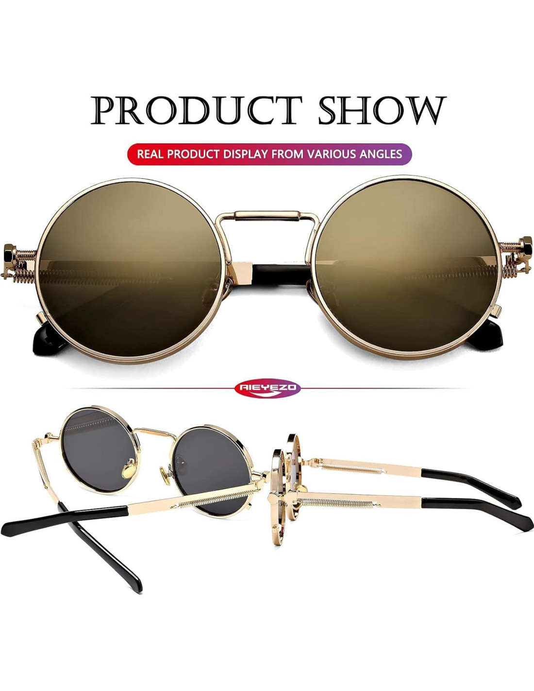 Gafas de sol redondas steampunk AIEYEZO con marco de metal gótico y lentes 100% bloqueadores de UV