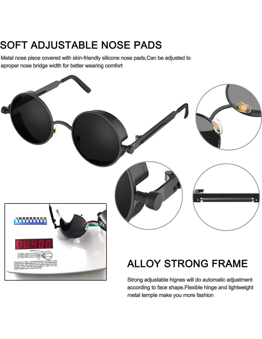 - DISEÑO RETRO STEAMPUNK: Las gafas de sol góticas steampunk clásicas están diseñadas para aquellas personas que les gusta usar gafas o ropa y joyería steampunk vintage para diferenciarse de los demás, las gafas de sol redondas son perfectas tanto para hombres como para mujeres cuando están conduciendo, esquiando, pescando, comprando, viajando, etc.