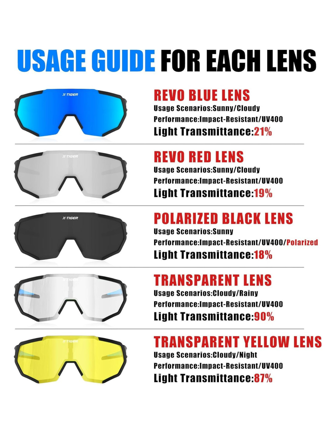 - Más Estilos y Super Accesorios: X-TIGER siempre se dedica a fabricar productos de calidad con alto rendimiento. Suministramos gafas de sol polarizadas para hombres y mujeres en múltiples colores para satisfacer tus necesidades personalizadas. Los accesorios incluyen estuche EVA, bolsas para gafas, paño de limpieza para gafas, tarjeta de prueba polarizada, patas de gafas negras, marco miope, marco TR90 con (Lente Revo, Lente Clara, Lente Amarilla Nocturna, Lente Polarizada Negra).