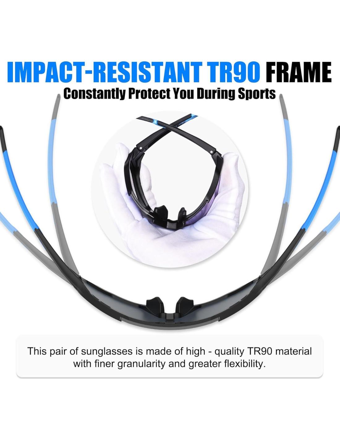 - Marcos TR90 Resistentes al Estrés: Un estilo de vida activo significa que tus gafas de sol deben ser lo suficientemente resistentes y robustas para enfrentar cualquier desafío. El marco TR90 especialmente diseñado y resistente al estrés puede soportar lo que le eches y más.