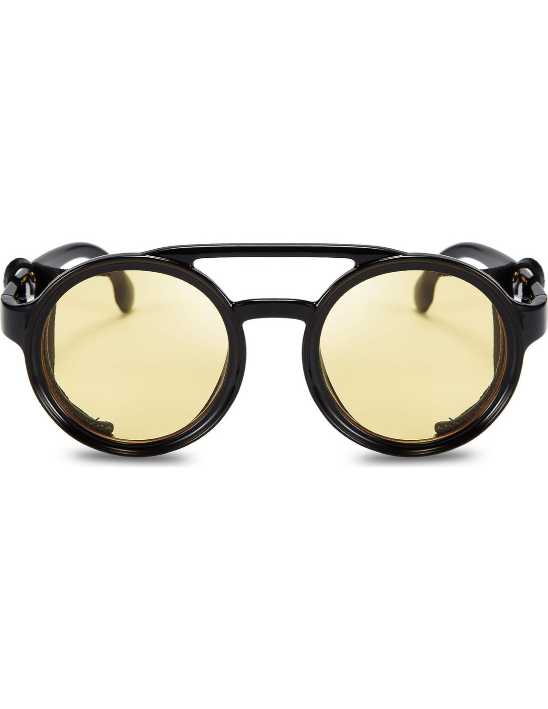 - Diseño STEAMPUNK - Gafas de sol redondas de estilo retro steampunk diseñadas con escudo lateral de cuero para mujeres y hombres. Gafas de sol vintage que te hacen lucir impresionante y la persona más fashionable del mundo.