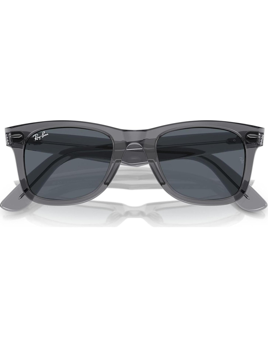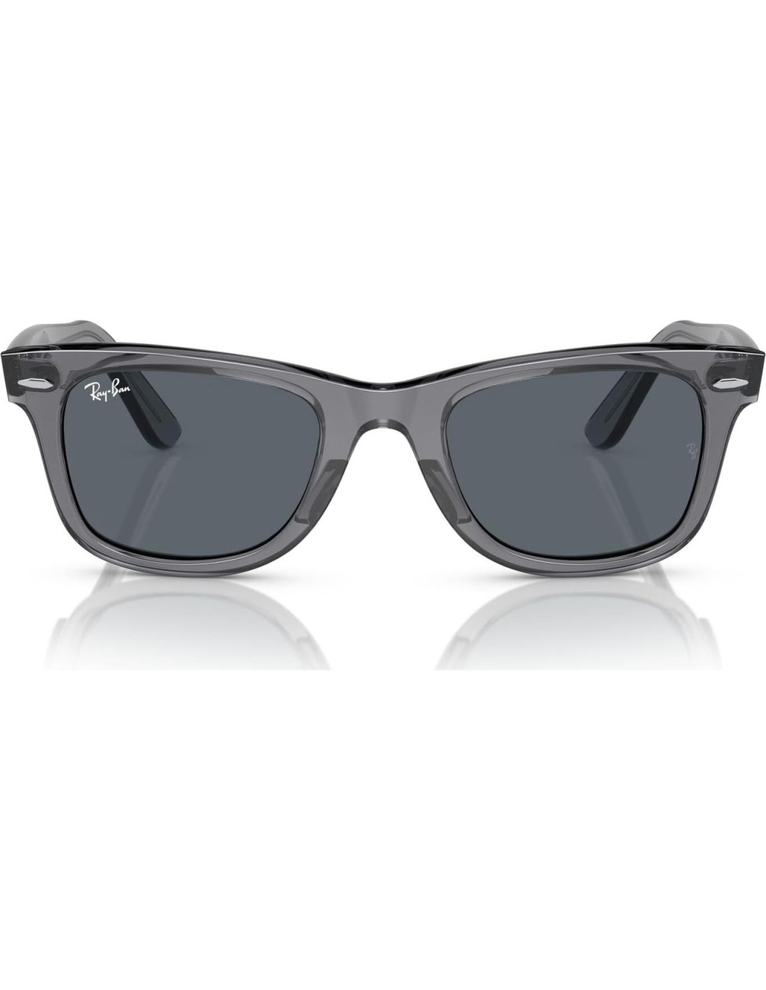 - CARACTERÍSTICAS DE LA MONTURA: Las gafas de sol RB2140 Original Wayfarer cuentan con una montura cuadrada, transparente gris y lentes azules.