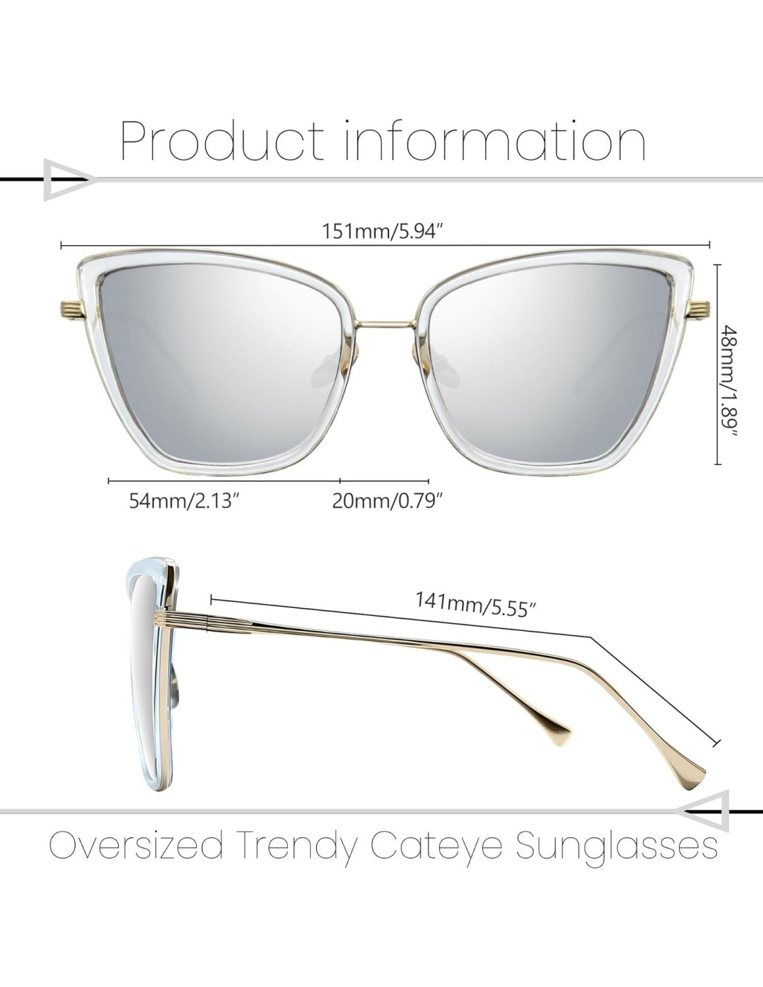 - Protección UV400: Las lentes espejadas plateadas de Joopin tienen una clasificación UV400, pueden bloquear el 99%-100% de la radiación UVA y UVB. Las gafas de sol UV400 son esenciales para proteger tus encantadores ojos contra daños UV a largo plazo cuando realizas actividades al aire libre. Las gafas de sol estilo cateye de Joopin son adecuadas para cualquier clima y condiciones meteorológicas. No necesitas preocuparte por los rayos dañinos, las gafas de sol con protección UV brindan el mejor cuidado a tus ojos durante todo el día, disfruta del suave sol ahora.