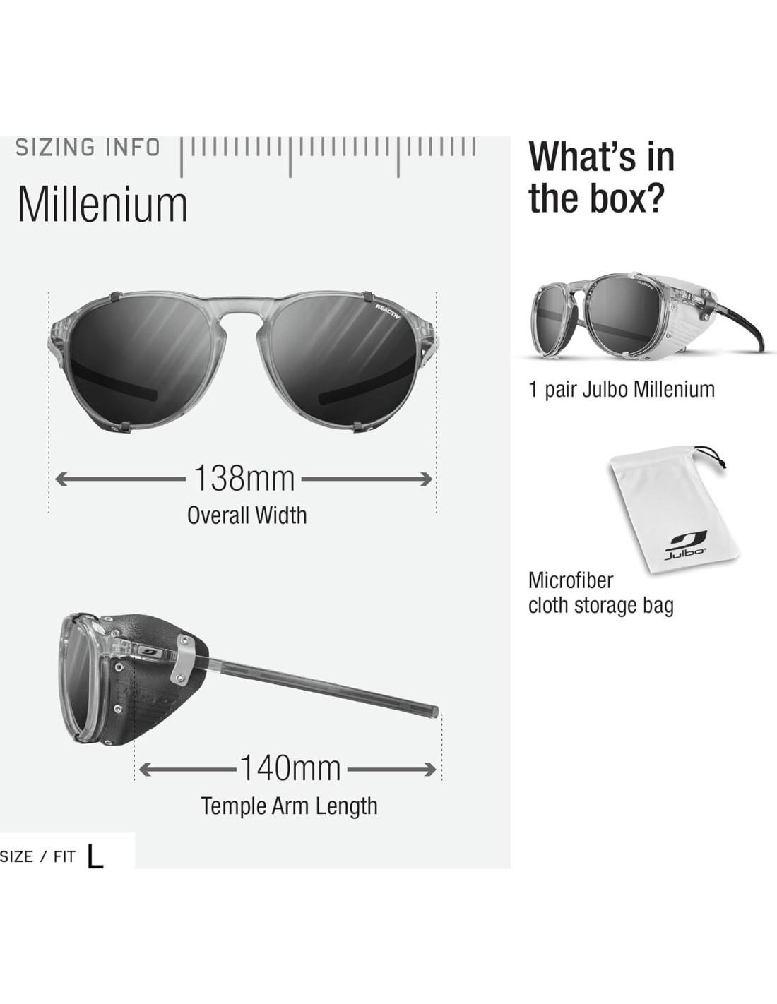 - USO INTENDIDO: Atemporal y moderno al mismo tiempo, el Millennium une el pasado y el futuro. Inspirado en las clásicas gafas de glaciar de Julbo como las Cham y Vermont Classic, estos retro progresivos combinan vibras vintage con un estilo moderno para un aspecto fresco, divertido e icónico que destaca tanto como tú. Las monturas de metal y plástico son ligeras y duraderas, y los protectores laterales de cuero bloquean la luz solar extrema y se pueden quitar fácilmente para el uso diario.