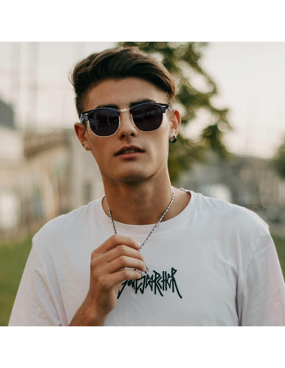 - Gafas de sol Club Masters unisex atemporales: las gafas de medio marco plegables combinan un estilo retro inconfundible con un nuevo diseño funcional. Esta versión plegable de las gafas browline de Joopin para mujeres y hombres se puede plegar y almacenar fácilmente para una máxima comodidad. Las lentes oscuras negras te hacen lucir genial y a la moda, las gafas semi sin montura de Joopin combinan diseño icónico, practicidad y estilo para crear las gafas plegables que hacen una declaración definitiva.