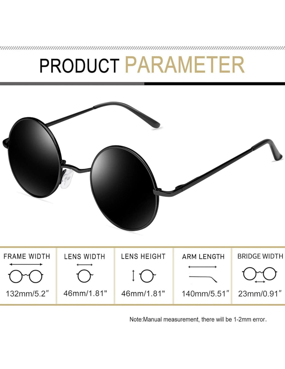 - Genial para actividades al aire libre y disfraces: Las gafas de sol polarizadas negras Joopin pueden proteger bien tus ojos, son adecuadas para usar cuando estás al aire libre para conducir, pescar, ir de compras, a la playa, fiestas, etc. Las gafas de sol redondas representan el optimismo de soñadores, artistas y creadores. Las gafas de sol circulares fueron populares en los años 20, 30, 60, 70 y 90. En casi un siglo, muchos personajes clásicos de cosplay usan gafas redondas. Las gafas de sol teashade Joopin pueden ayudarte a asistir a todo tipo de fiestas de disfraces.