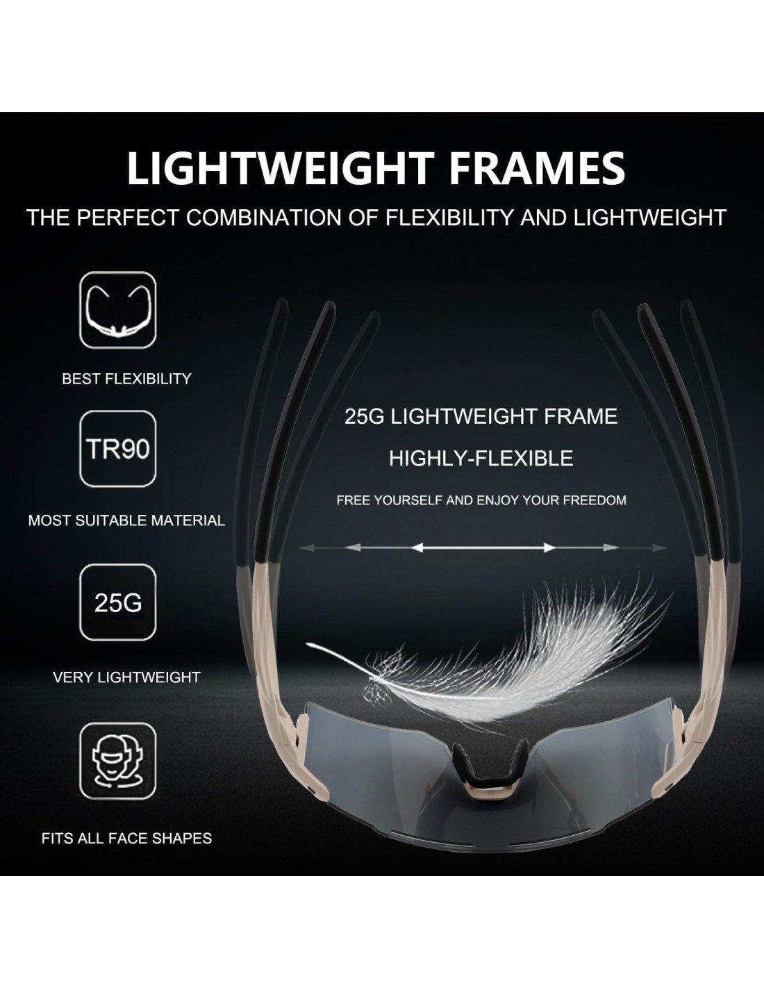 - DISEÑO LIGERO: Nuestras gafas deportivas están hechas de un marco duradero y fuerte y lentes con protección UV, diseño ligero, pesan solo 25 g (0,91 oz) que no sentirás que las llevas puestas; El marco puede doblarse bajo presión y contornear tu cara cómodamente; Ideal para uso en motocicleta, ciclismo, conducción, running, béisbol, pesca, carreras, golf y escalada, trekking u otras actividades al aire libre