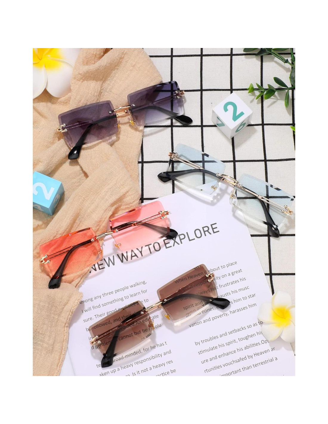 - Lo que recibirás: recibirás 4 pares de gafas de sol rectangulares sin montura en diferentes colores, que son diferentes y clásicas; La cantidad suficiente puede combinar con tus atuendos y peinados diarios, mostrando tus diversos encantos entre la multitud