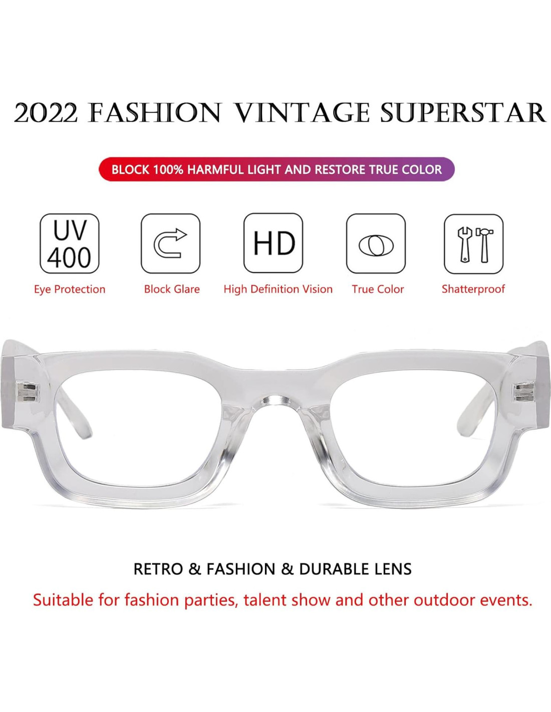 - DISEÑO RETRO ELEGANTE - Gafas rectangulares de personalidad; personaliza tu estilo con una variedad de colores de montura y tratamientos de lentes que incluyen lentes azules, amarillos y marrones. Crea looks emocionantes y únicos, brindando a estas gafas la máxima comodidad junto con una moda prístina que hará que tu estilo sea atemporal