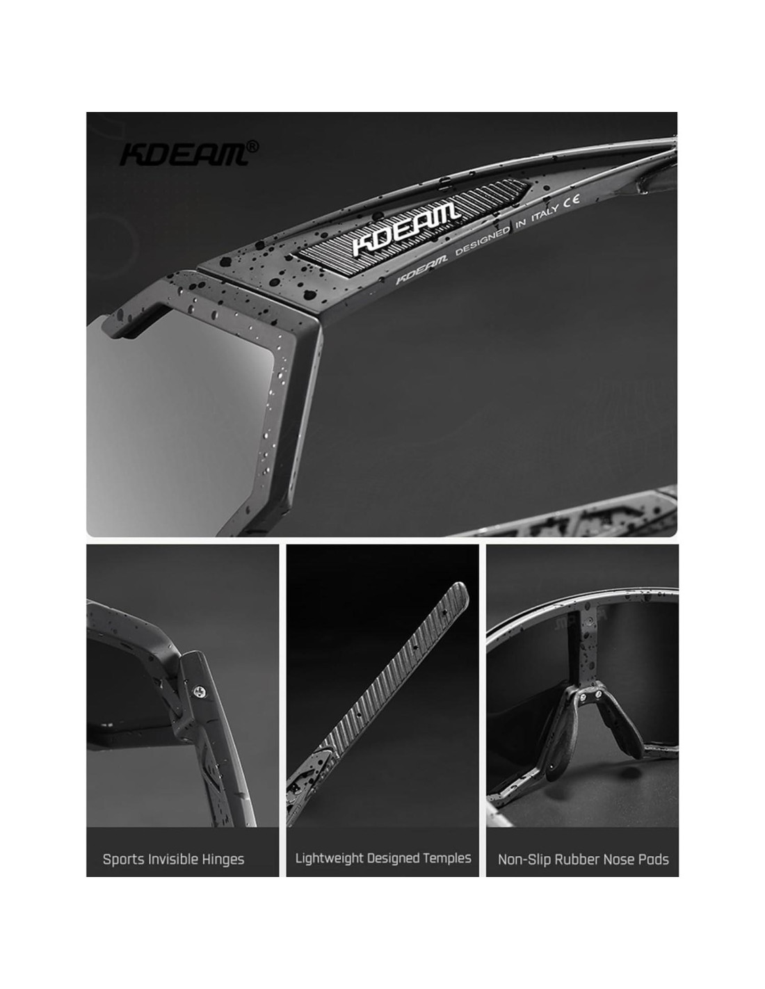 - Lente polarizada HD amplia, las lentes polarizadas HD pueden mostrarte el mundo más realista y colorido, y la lente de una sola pieza amplia proporciona un mayor campo de visión y hace que las gafas de ciclismo sean más efectivas contra el viento al mismo tiempo.