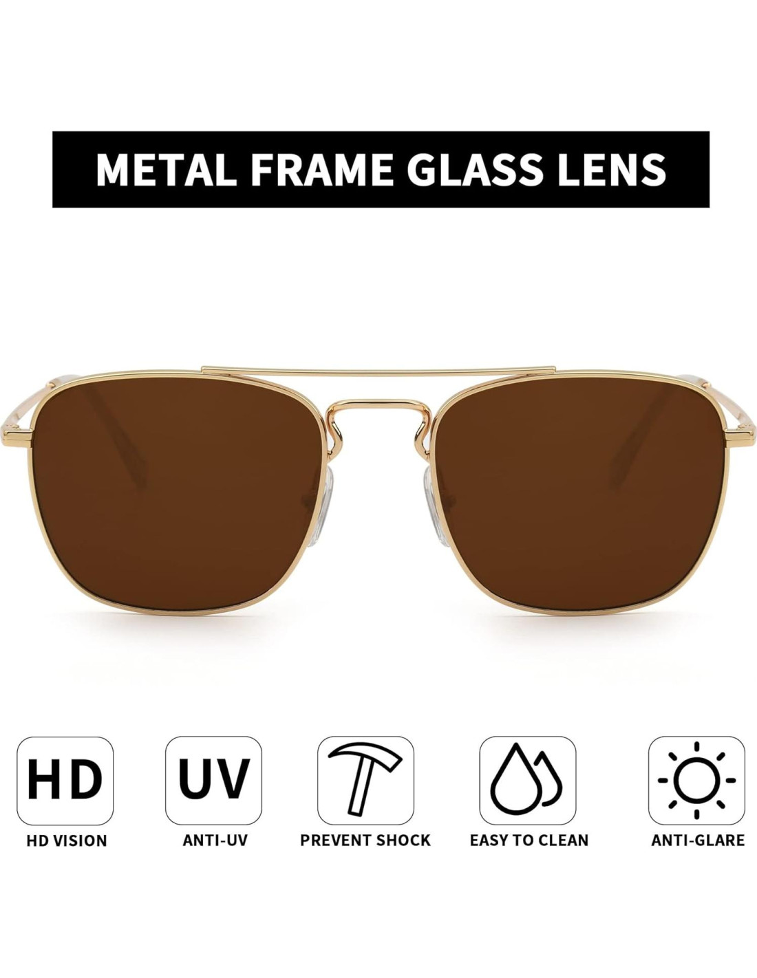 - Diseño de moda y estilo - Las gafas de sol aviador cuadradas para hombres y mujeres con almohadillas nasales ajustables son adecuadas para cualquier rostro. Montura de metal de aleación y lentes de vidrio son resistentes a impactos, arañazos y duraderas.