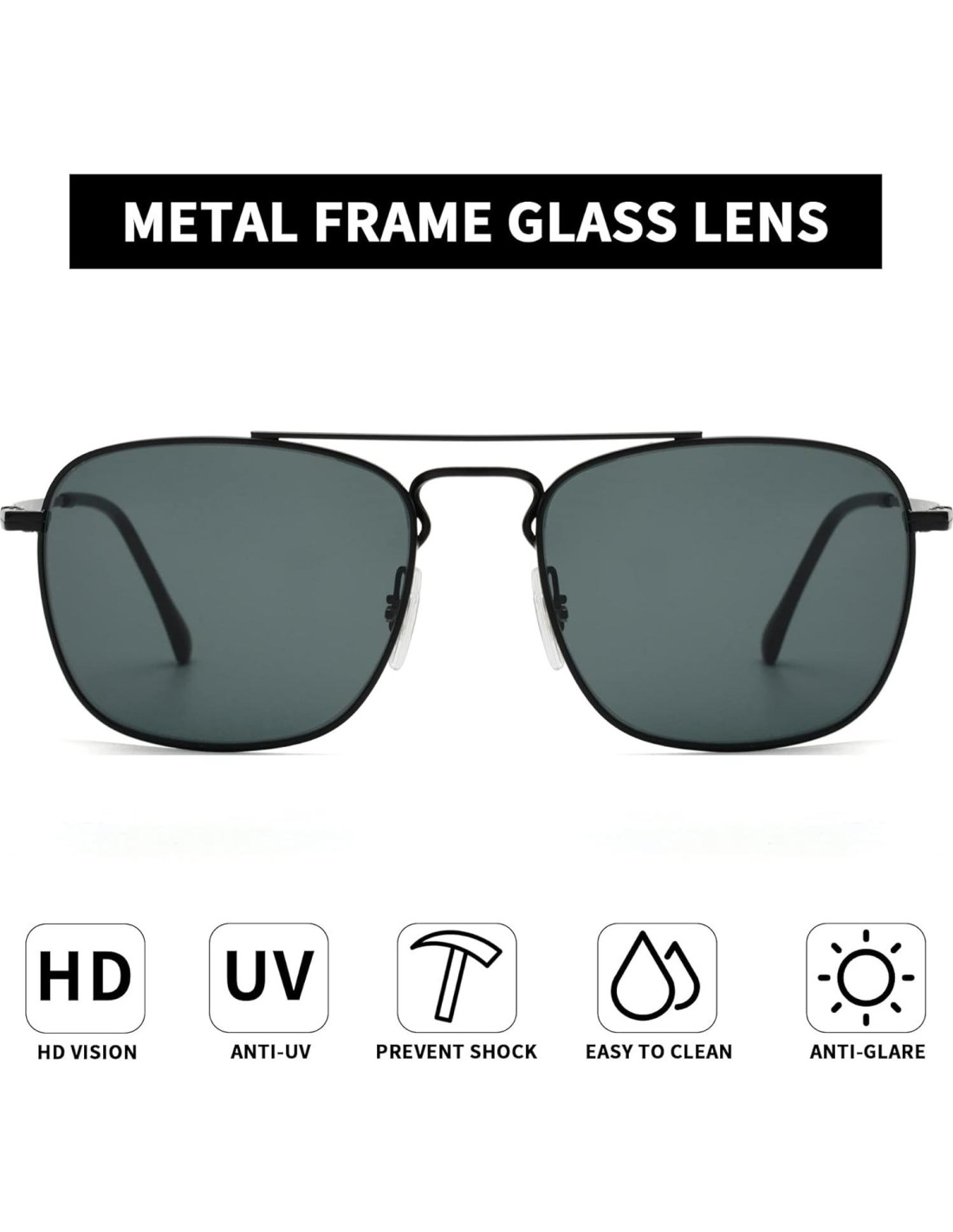 - Diseño de moda y estilo - Las gafas de sol aviador cuadradas para hombres y mujeres con almohadillas nasales ajustables son adecuadas para cualquier rostro. Las monturas de metal de aleación y los lentes de vidrio son resistentes a impactos, arañazos y duraderos.