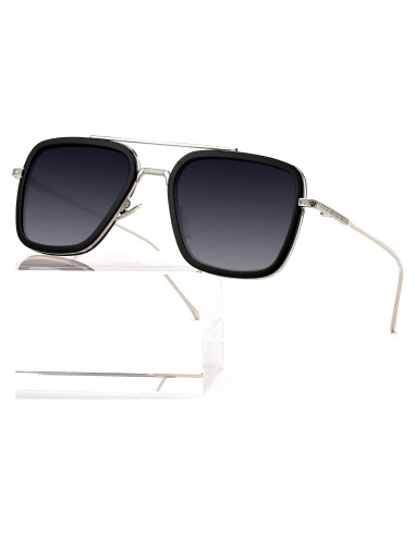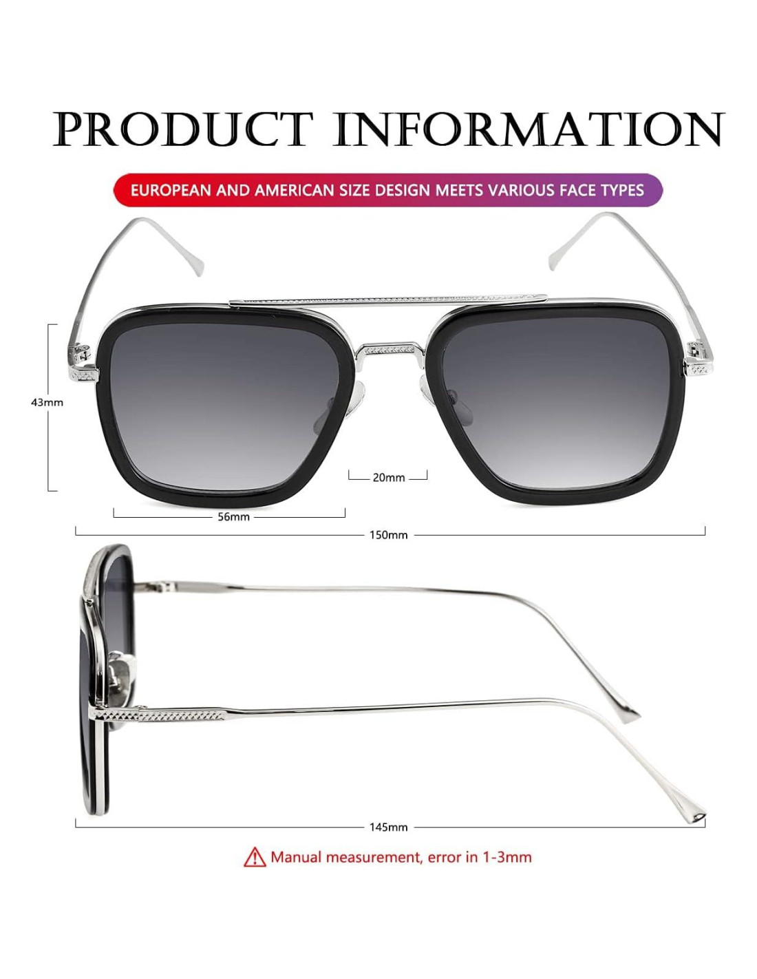 - SERIE DE GAFAS DE SOL DE PELÍCULA - Tony Stark le dio a Peter Parker gafas de sol. Extrañemos al Sr. Stark como Peter Parker. Las monturas cuadradas vintage están hechas de materiales de metal y PC de alta calidad para una durabilidad que te hará destacar entre la multitud. Las lentes de forma cuadrada proporcionan 100% de protección UV y bloquean el 99% de la luz reflejada para mejorar tu visión.