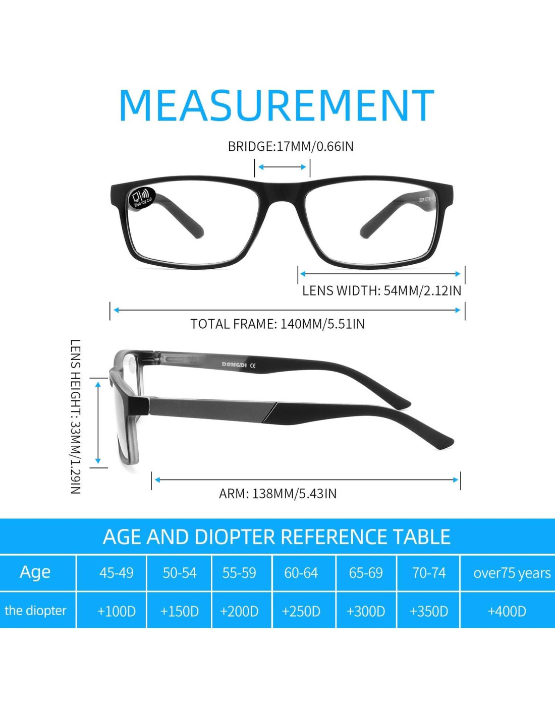 - GAFAS DE LECTURA ANTI LUZ AZUL: Bloqueador de luz azul, 100% protección UV400, resiste efectivamente el 100% de los dañinos rayos azules. Anti reflejo; reduce la fatiga ocular, minimiza el dolor de cabeza cuando usas productos digitales (TV/ Teléfono/ Ipad/ Luz LED/ Computadora/ ...), las gafas DONGDI de luz azul proporcionan protección durante todo el día, puedes disfrutar de un mejor sueño y tiempo digital.